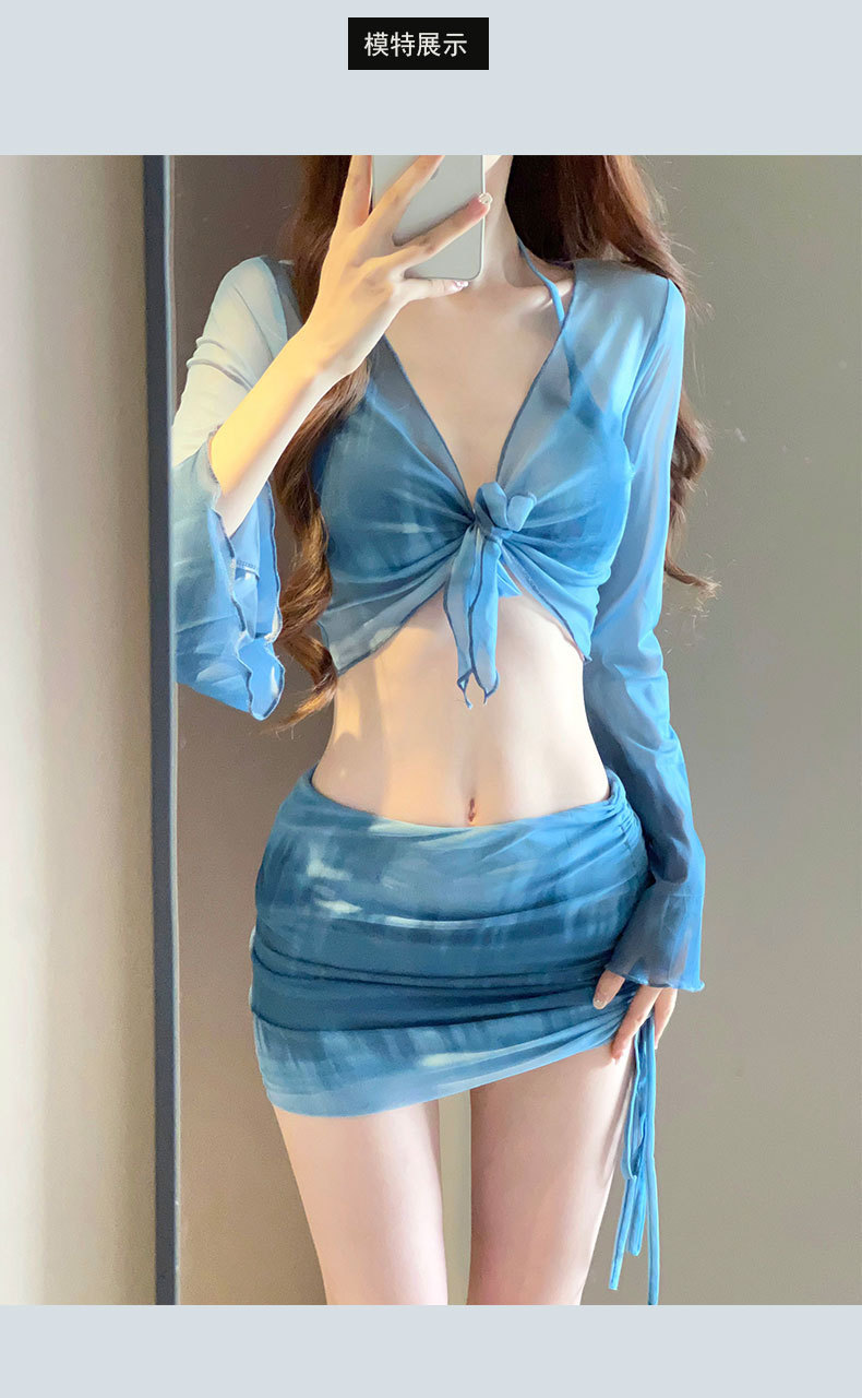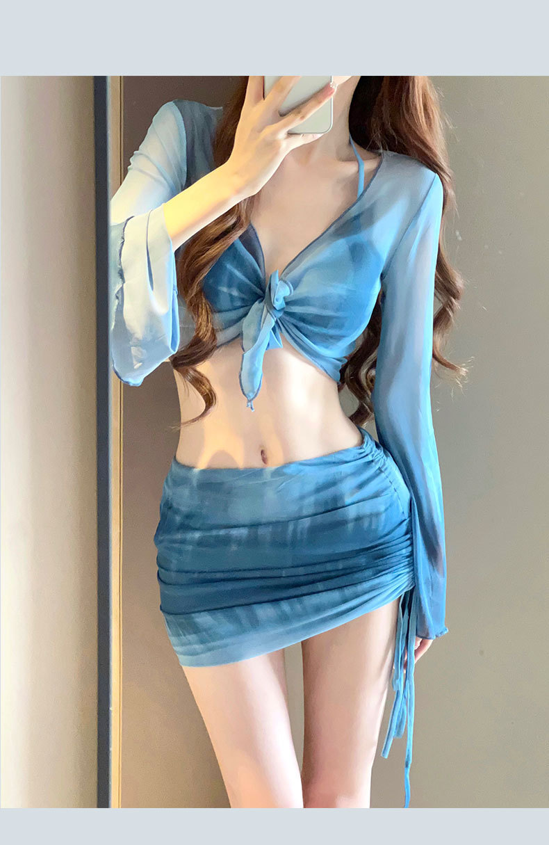 2025 새로운 수영복 여성 보수 학생 하이 엔드 긴팔 온천 해변 휴일 분할 4 피스 수영복 여성스토어 가기