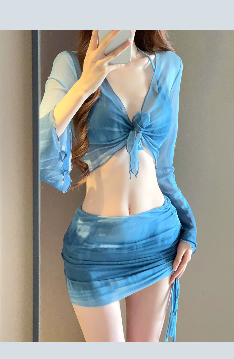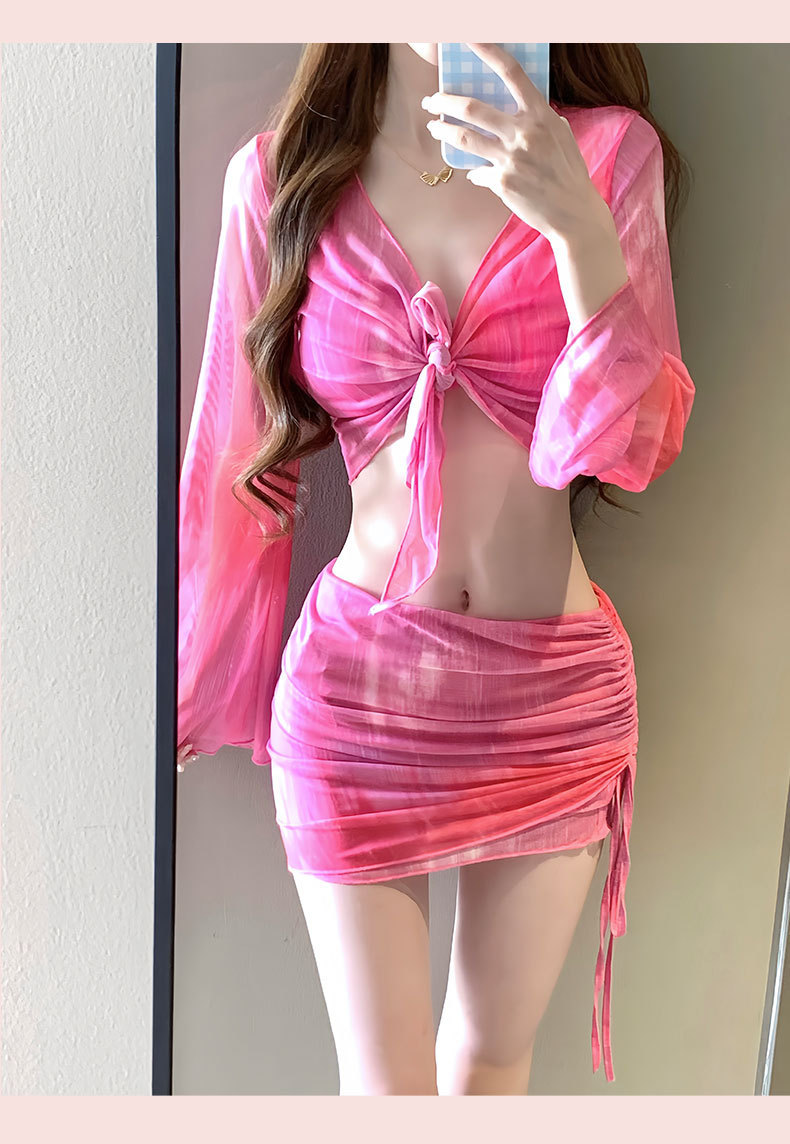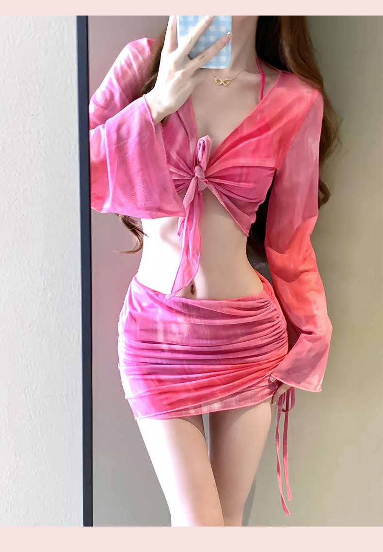 2025 새로운 수영복 여성 보수 학생 하이 엔드 긴팔 온천 해변 휴일 분할 4 피스 수영복 여성