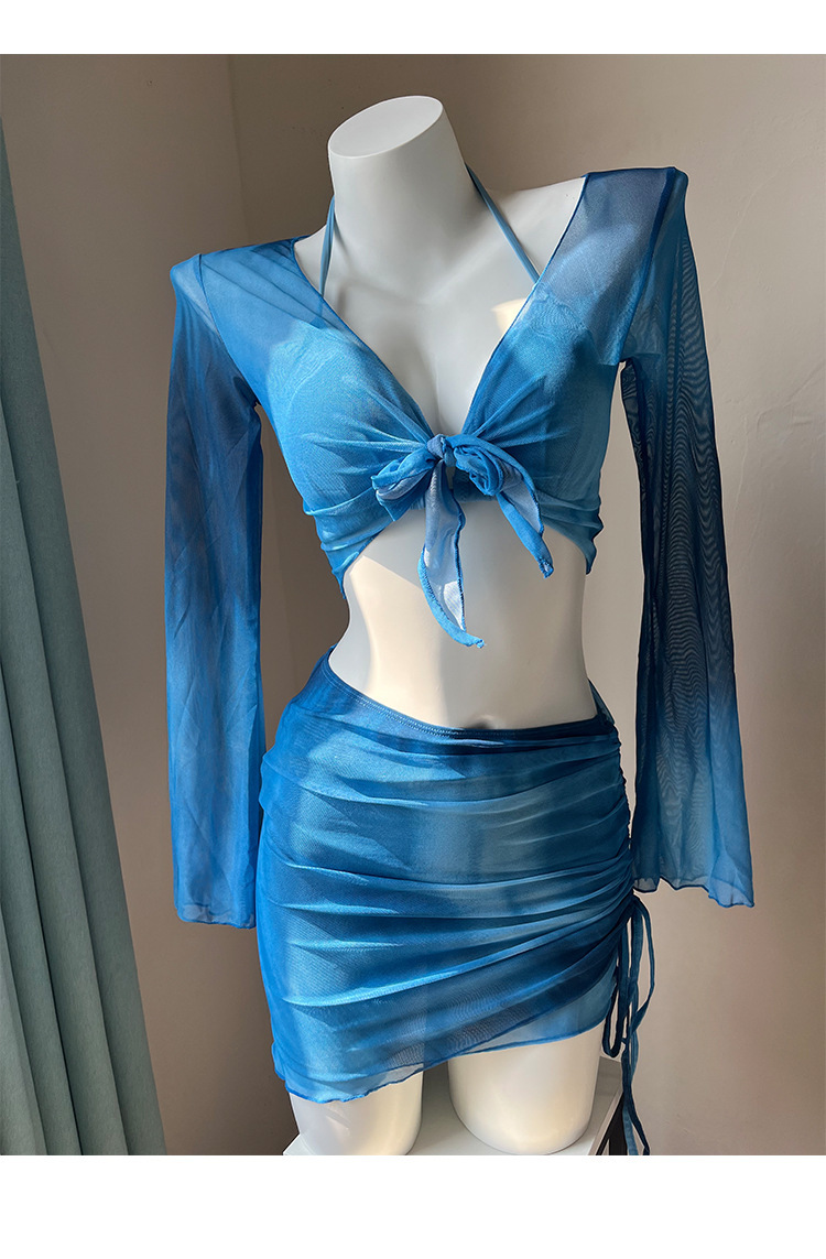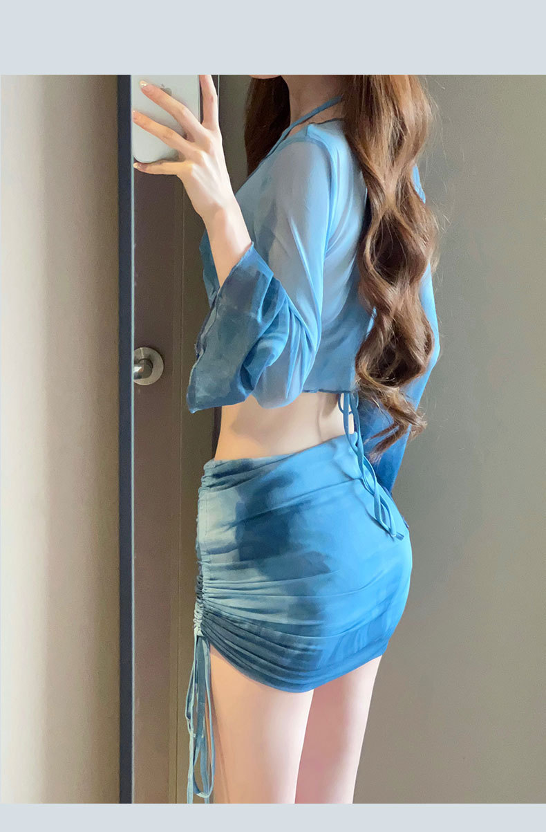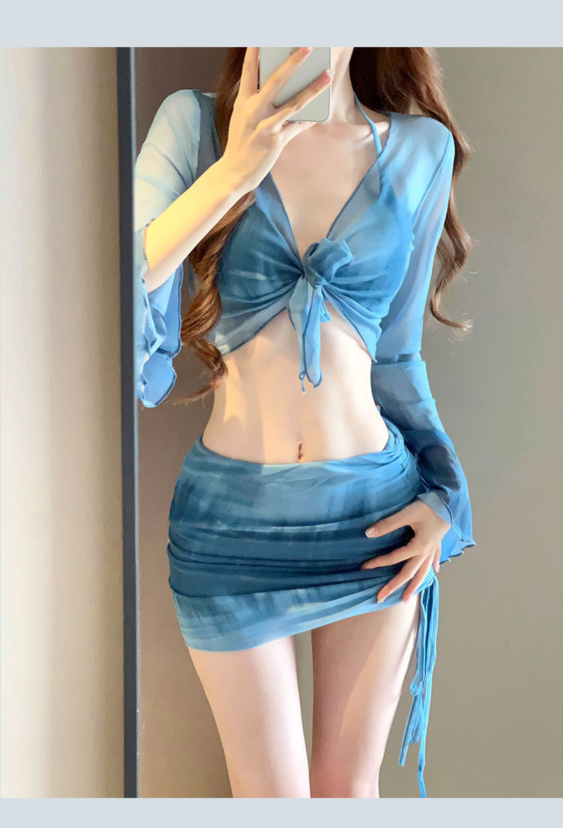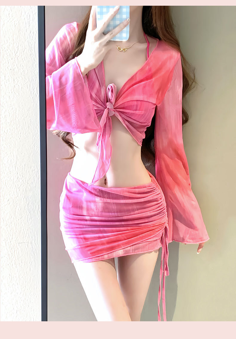 2025 새로운 수영복 여성 보수 학생 하이 엔드 긴팔 온천 해변 휴일 분할 4 피스 수영복 여성
