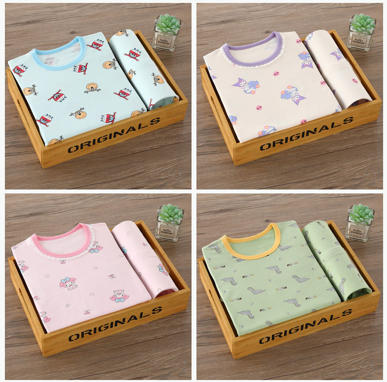 어린이 속옷 세트 순면 잠옷 무봉제 아기 옷 남녀 아동용 가을옷 가을바지 만화 패턴스토어 가기