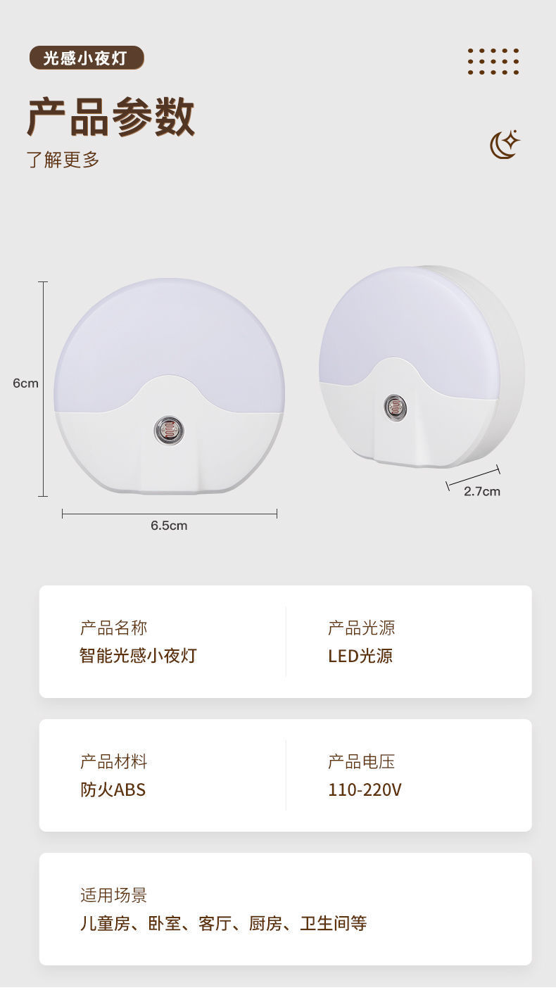 둥근 야간 조명 제어 유도 침실 야간 조명 플러그인 따뜻한 빛 작은 테이블 램프 머리맡 램프 야간 경계 도매