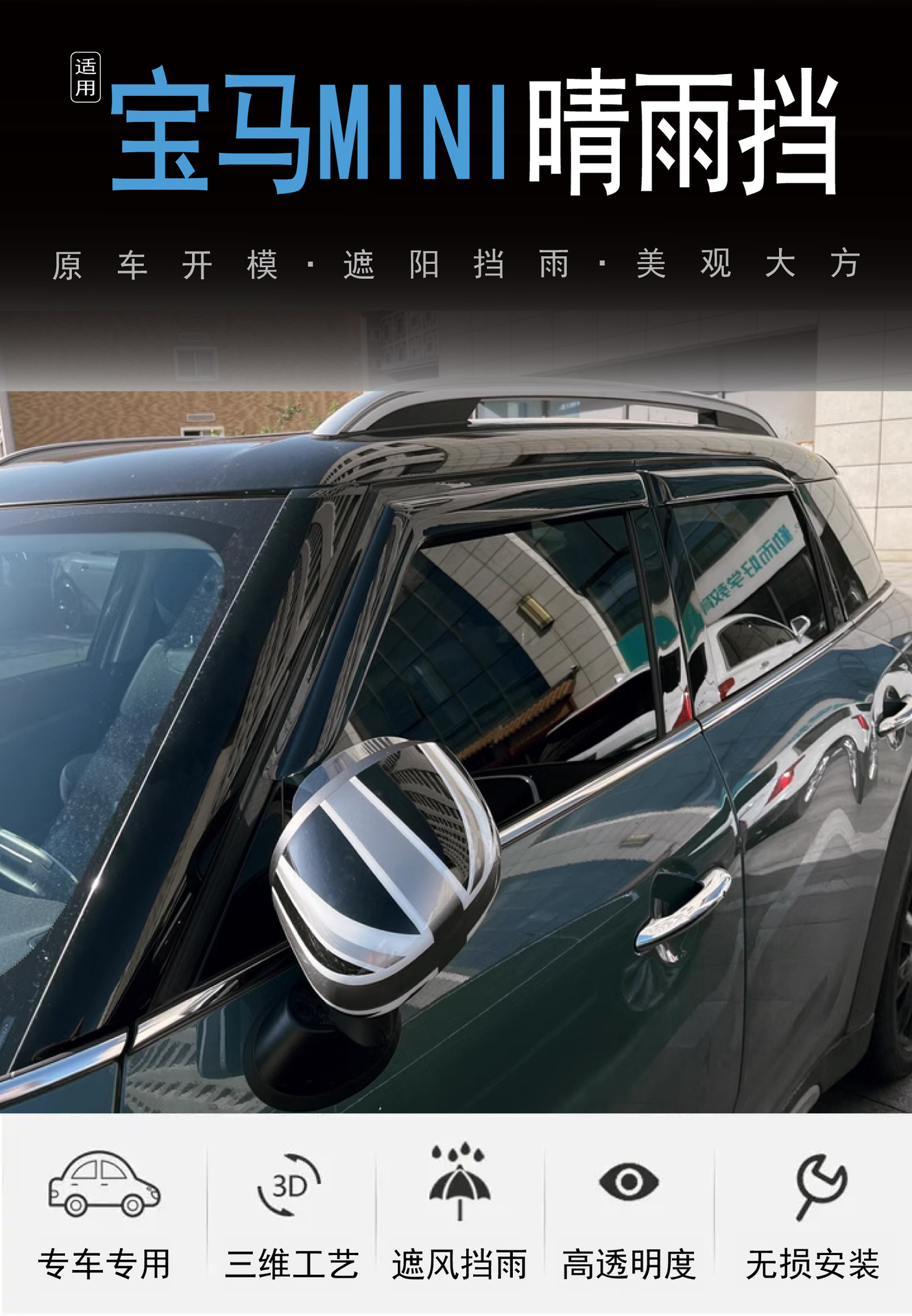 2016-2024 BMW MINI 창 개조 비 차단 아크릴 자동차 비 차단 장치에 적합스토어 가기
