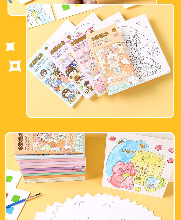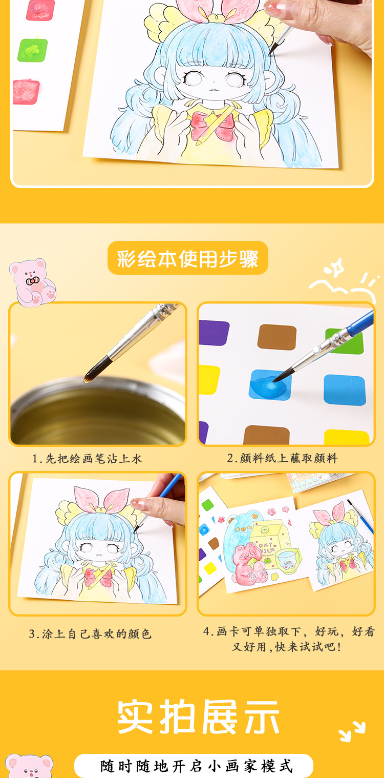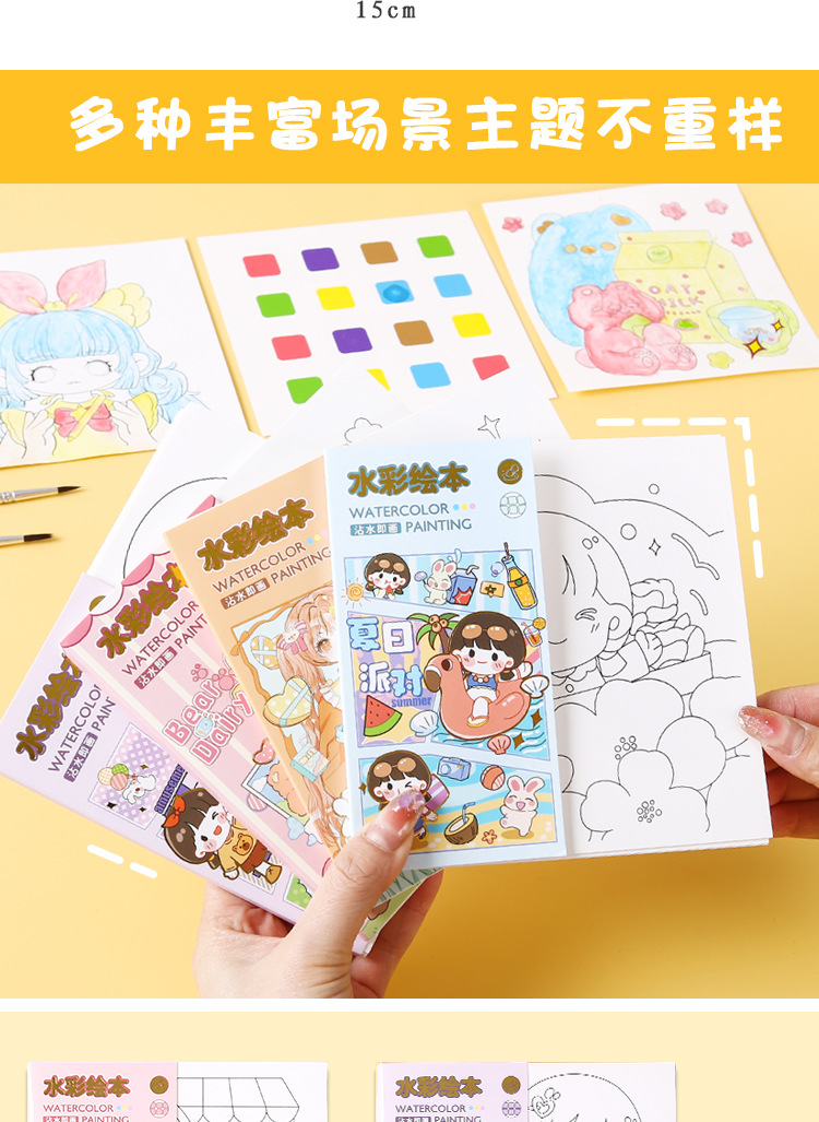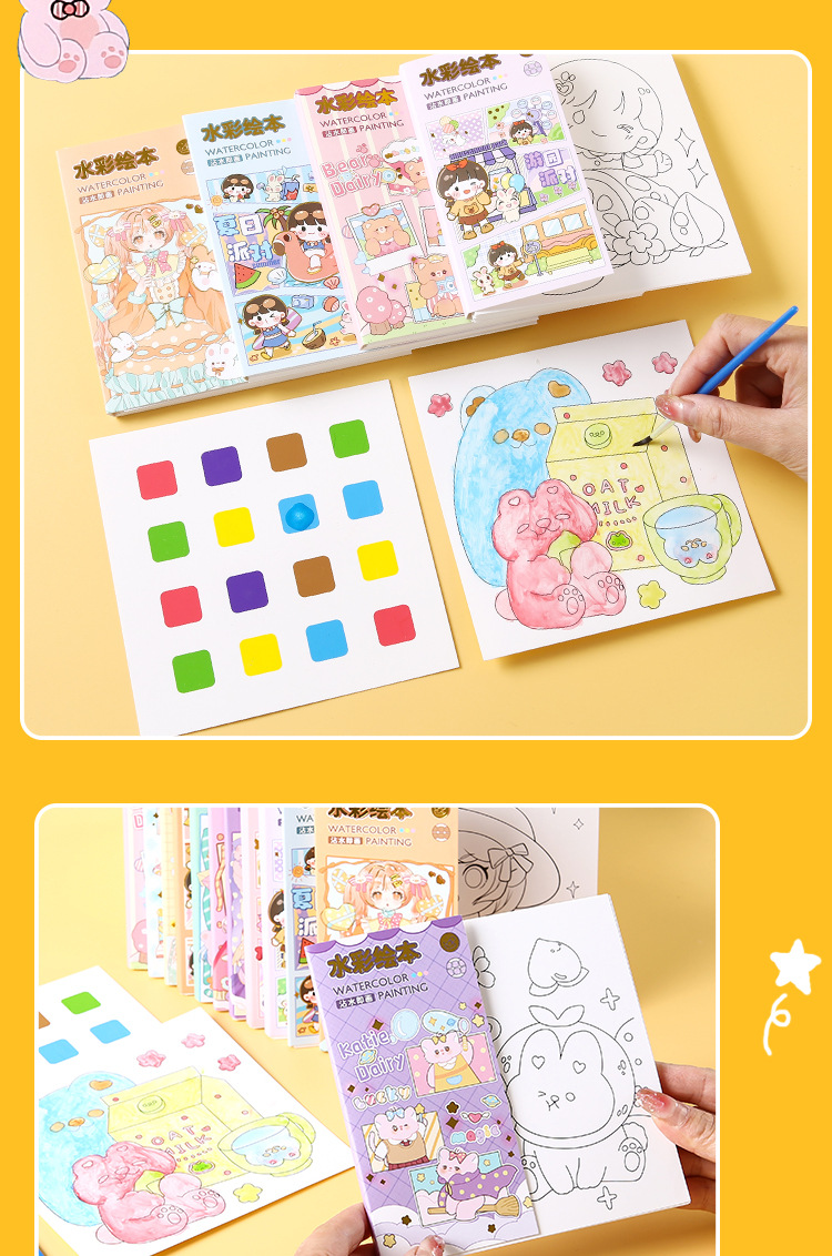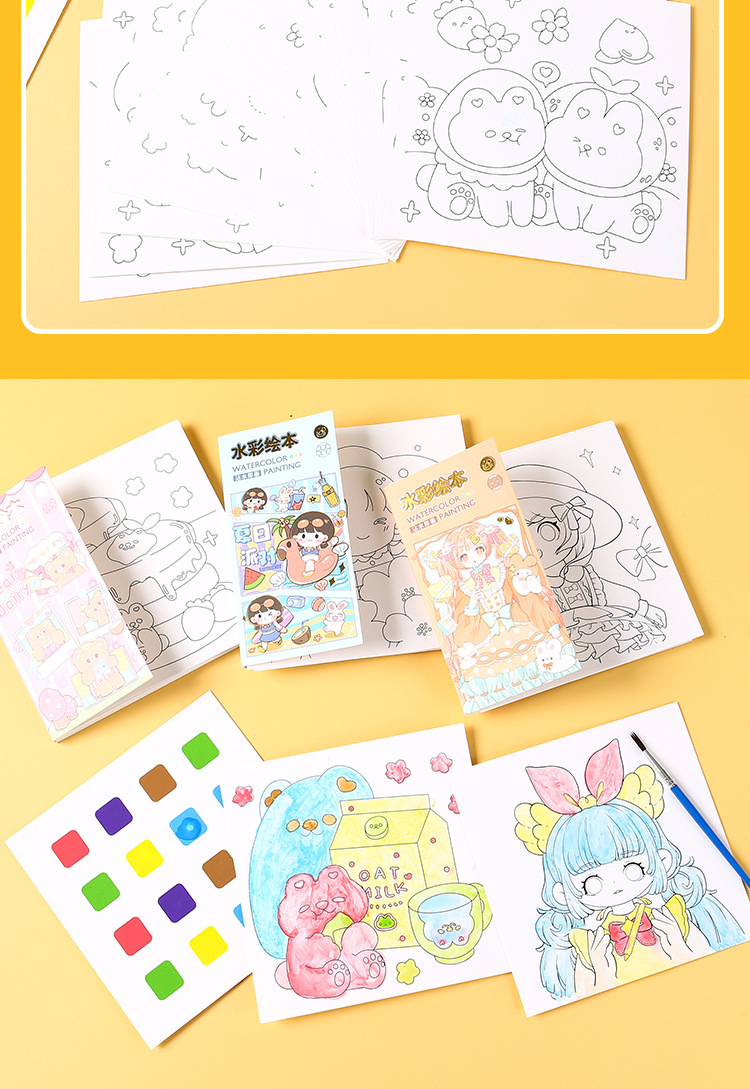 어린이 수채화 색칠하기 책에는 안료가 함께 제공됩니다. 교육 계몽 낙서 그림책 유치원 휴대용 그림책 도매스토어 가기
