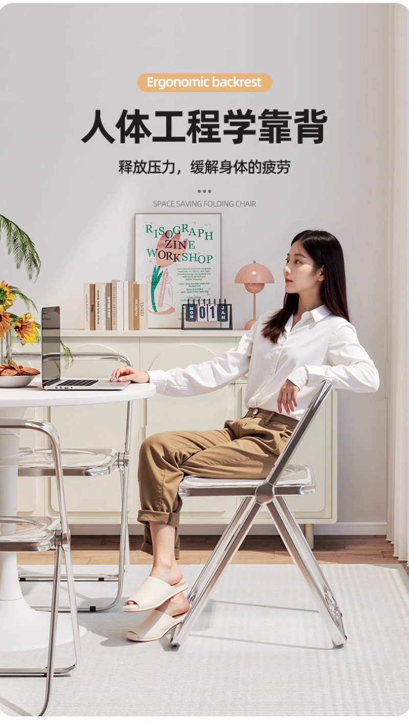 투명한 아크릴 의자 식탁 현대 발코니 온라인 유명 인사 사진 메이크업 라이트 럭셔리 침실 접이식 의자 식당스토어 가기