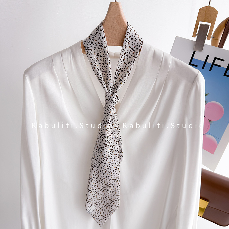 • 투톤 스몰 레오파드 프린트 타이 스카프-오프화이트