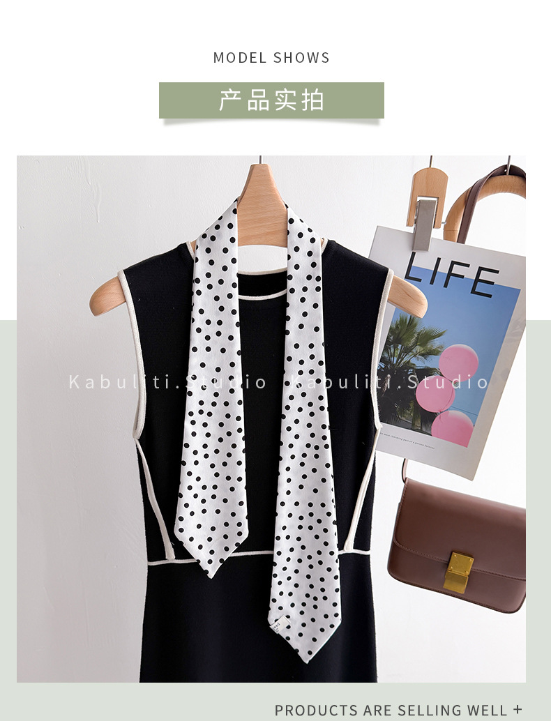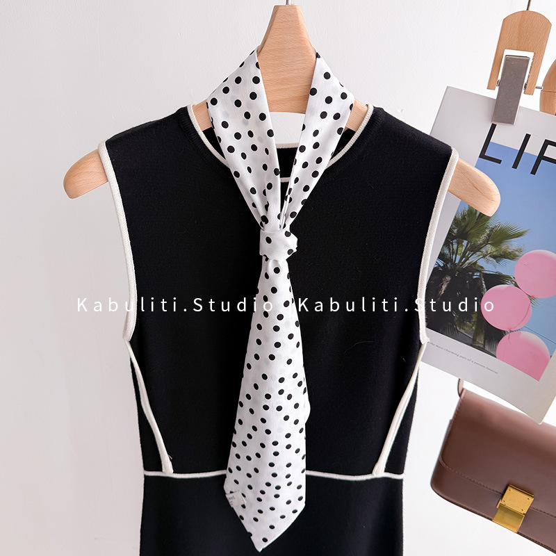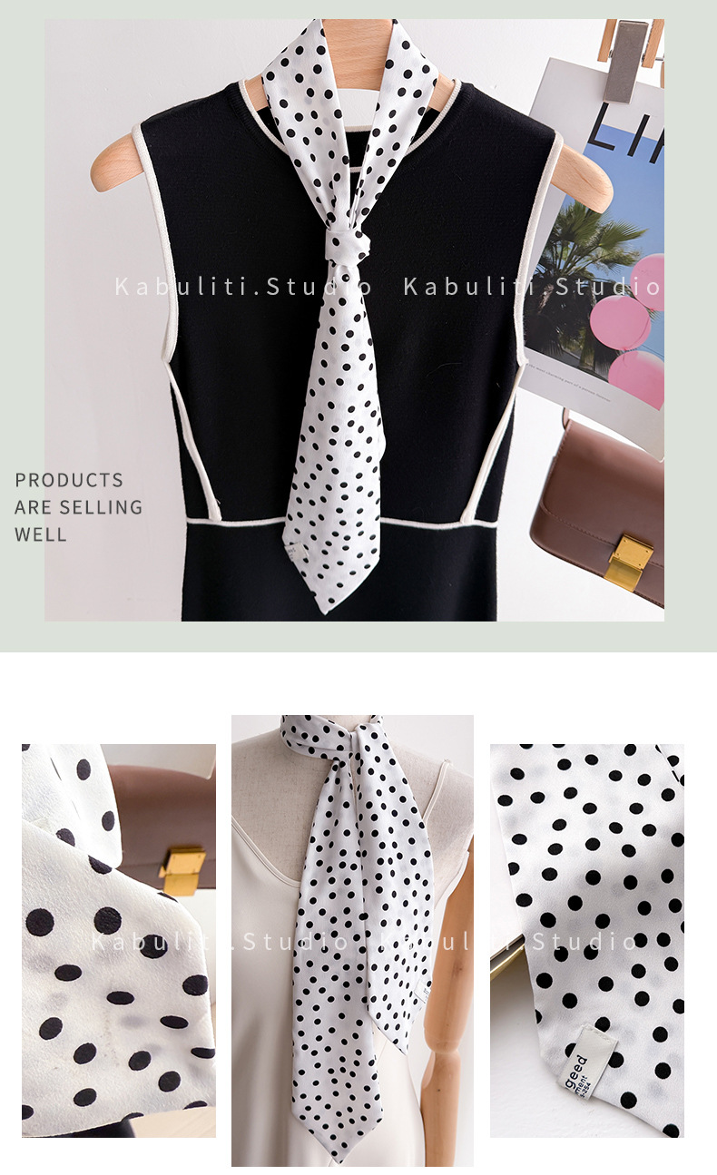 • 폴카 도트 타이 스카프-블랙