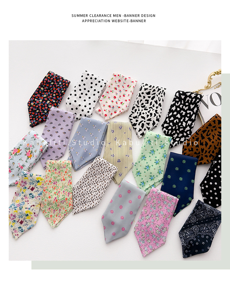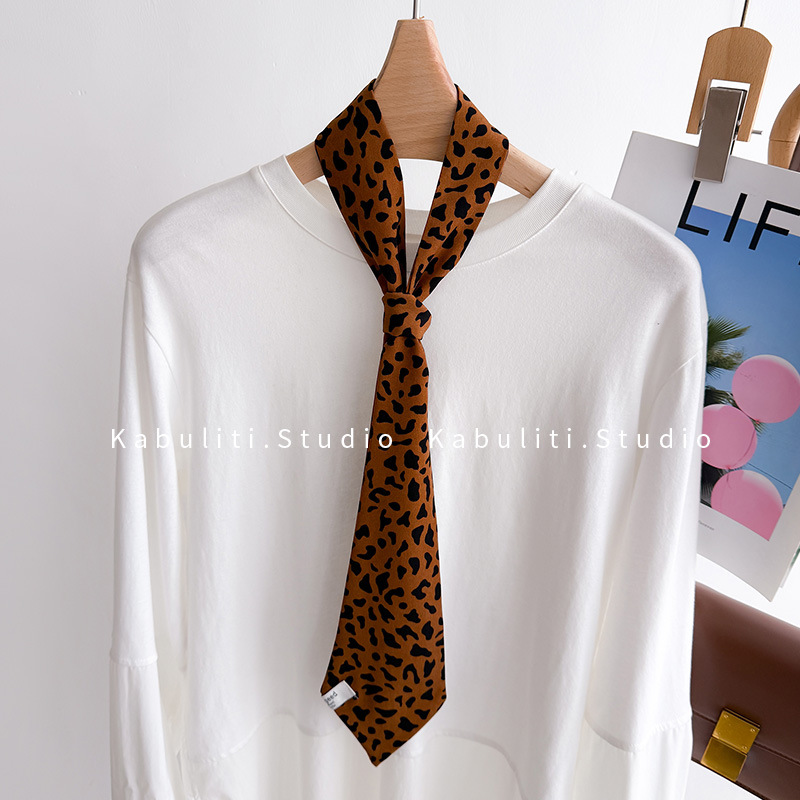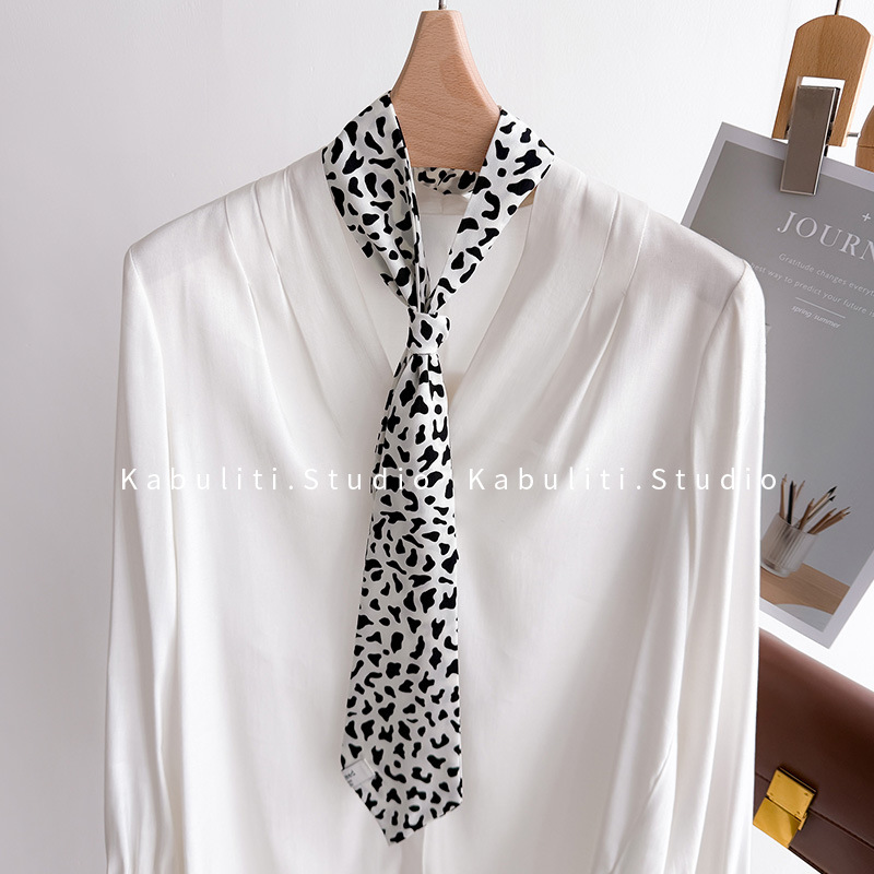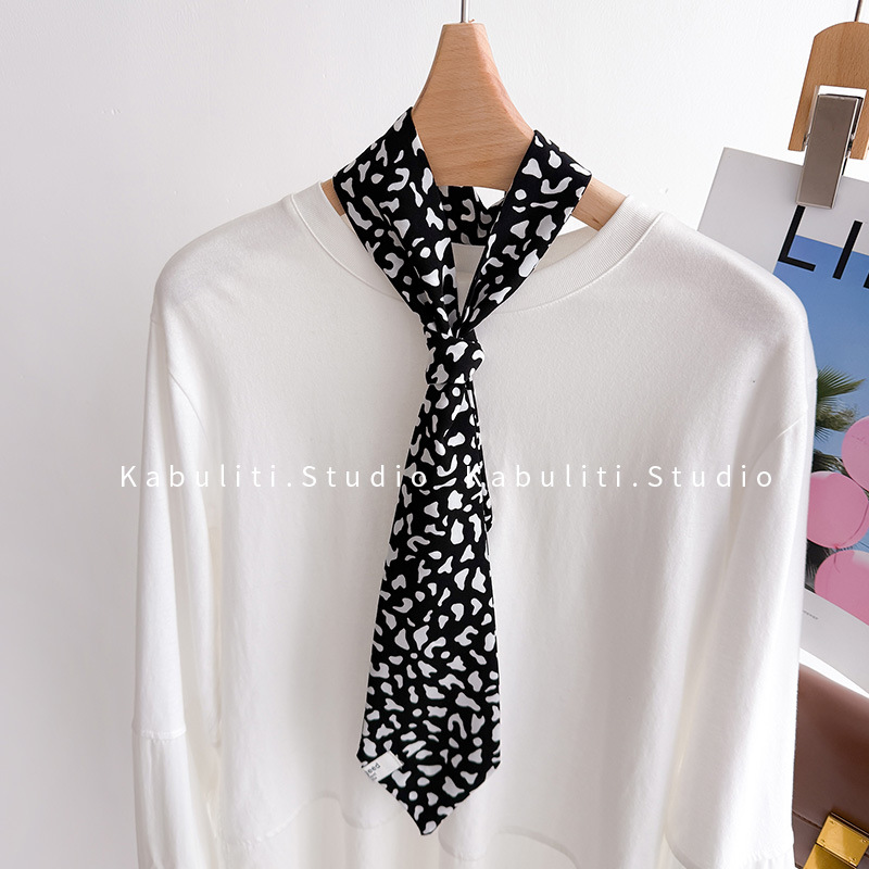• 작은 표범 무늬 넥타이 스카프 - 밀크 화이트