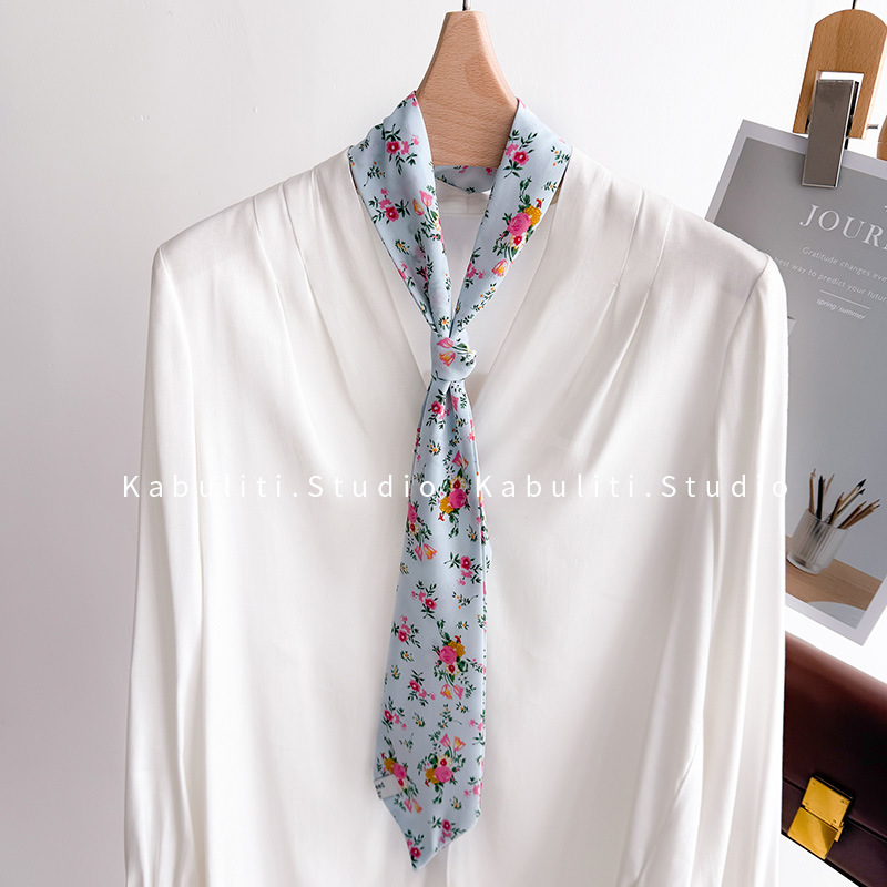 작은 긴 좁은 실크 스카프 남성과 여성을위한 목 보호 스카프 일치하는 셔츠 얇은 스카프 머리 벨트 손목 타이