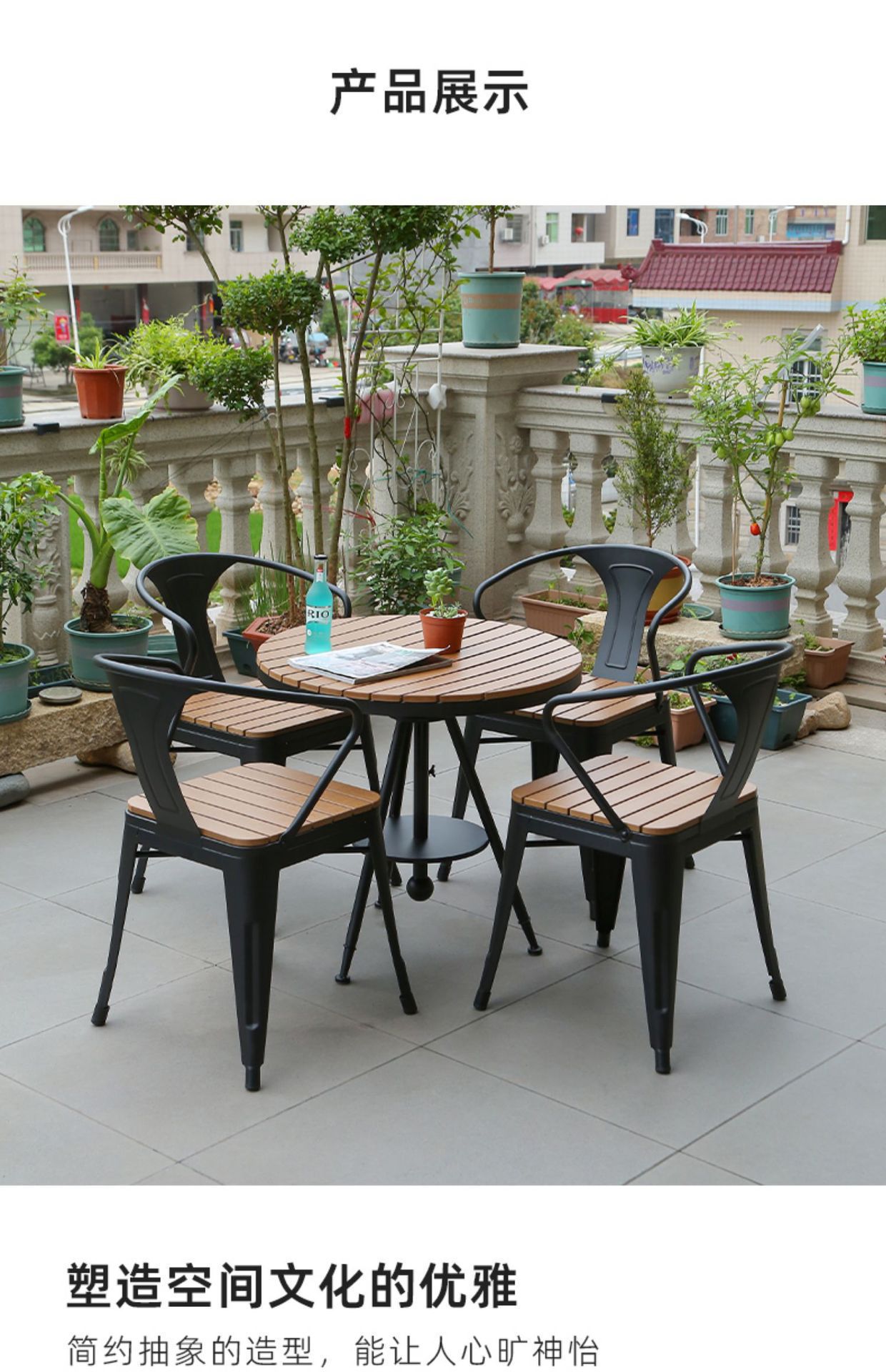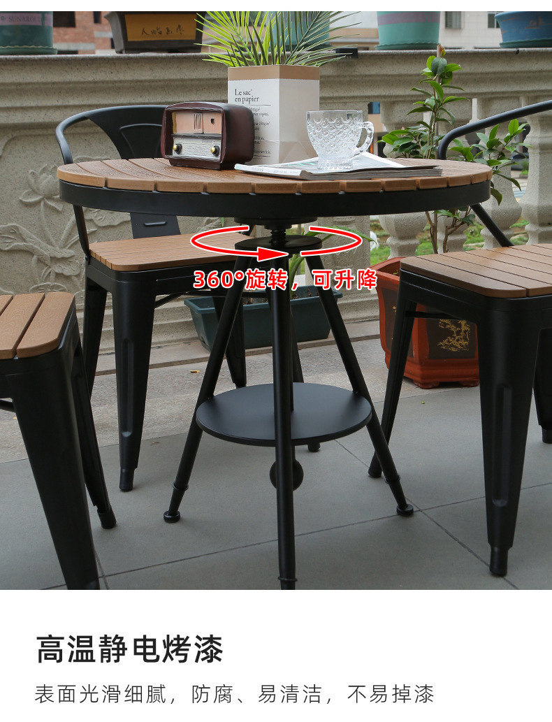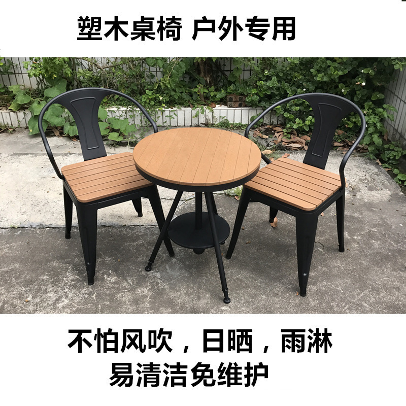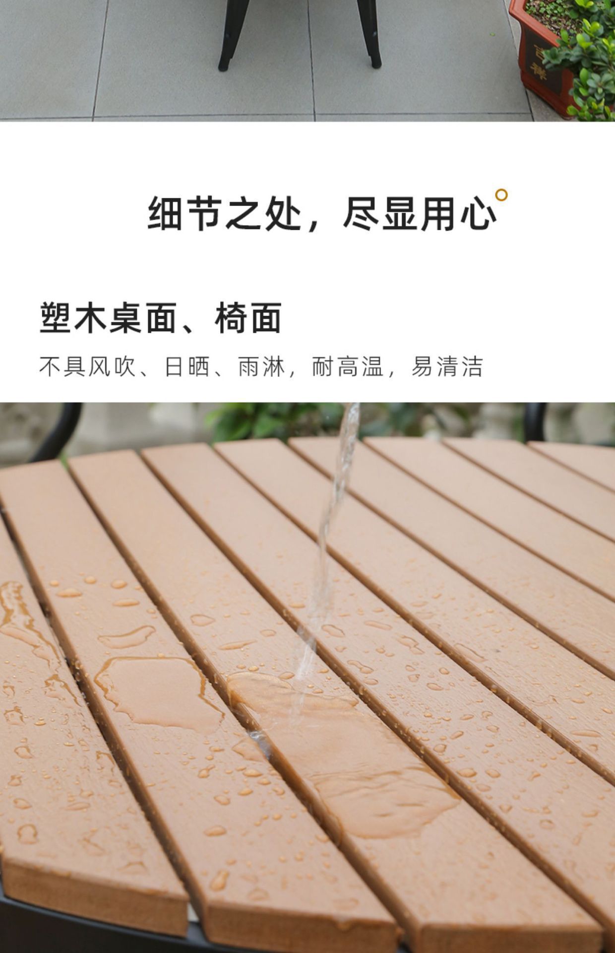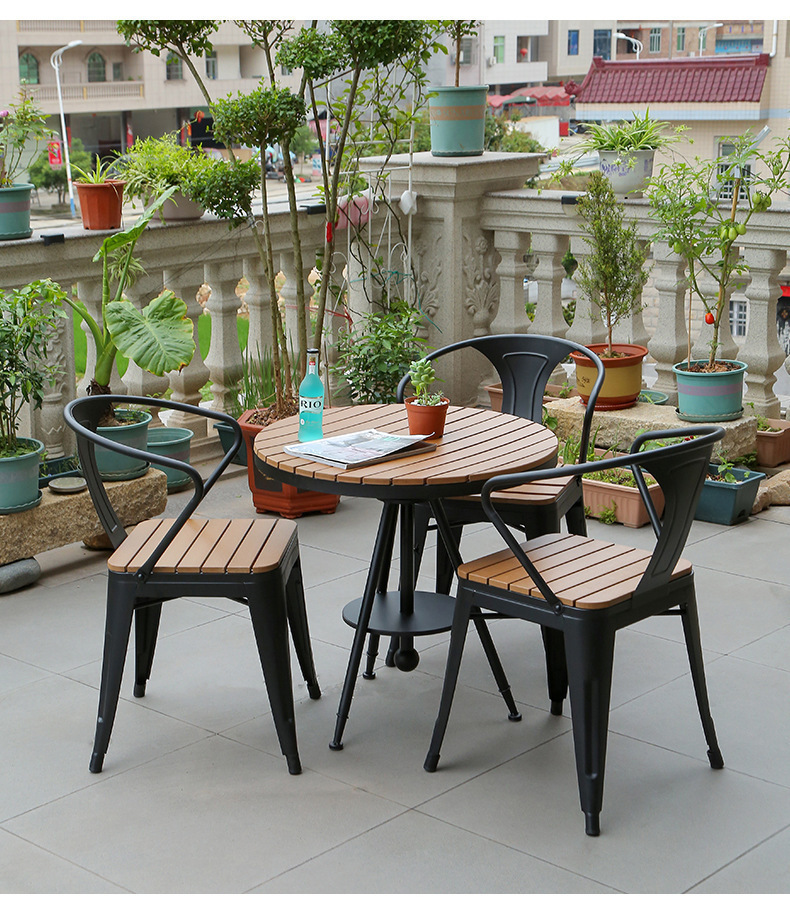 야외 테이블과 의자 발코니 커피 테이블 안뜰 야외 레저 플라스틱 나무 라운드 테이블 밀크 티 숍 외부 식탁 및 의자 1 테이블 및 4 개의 의자