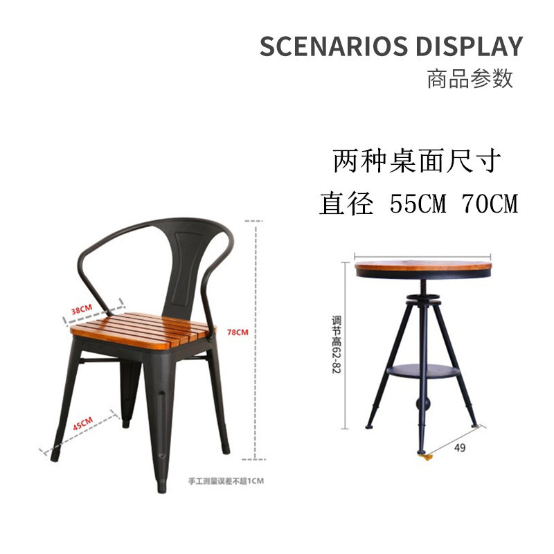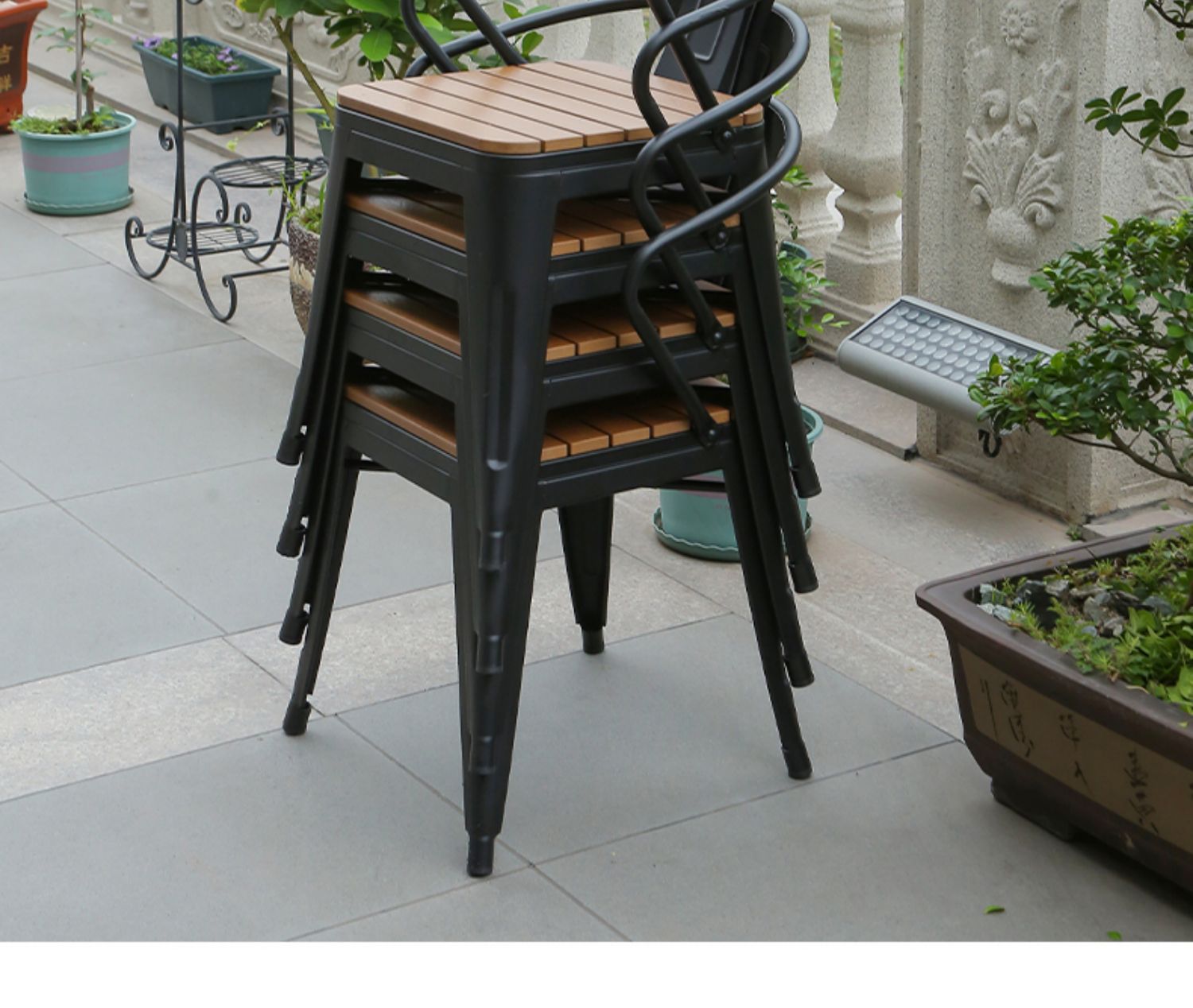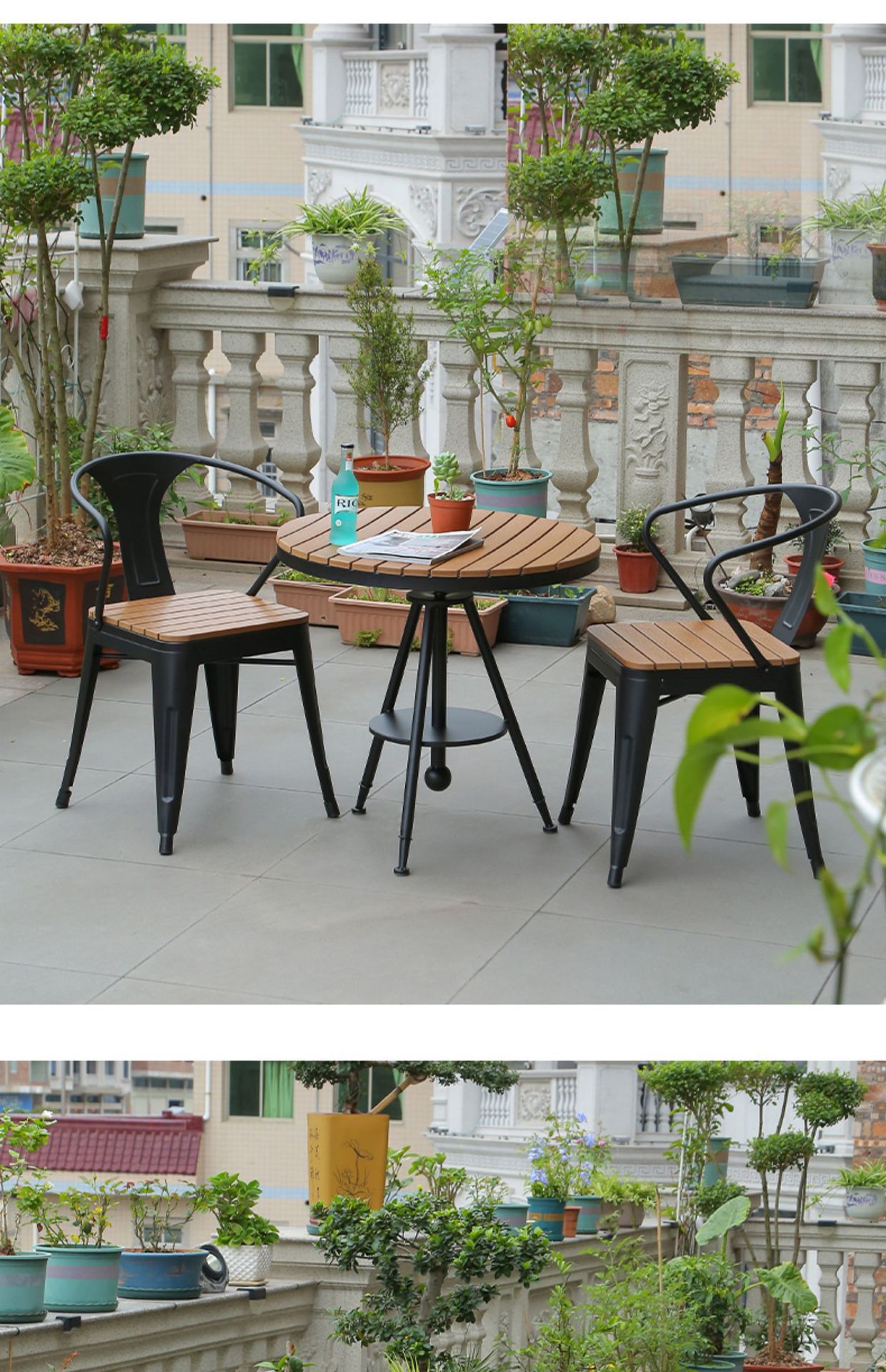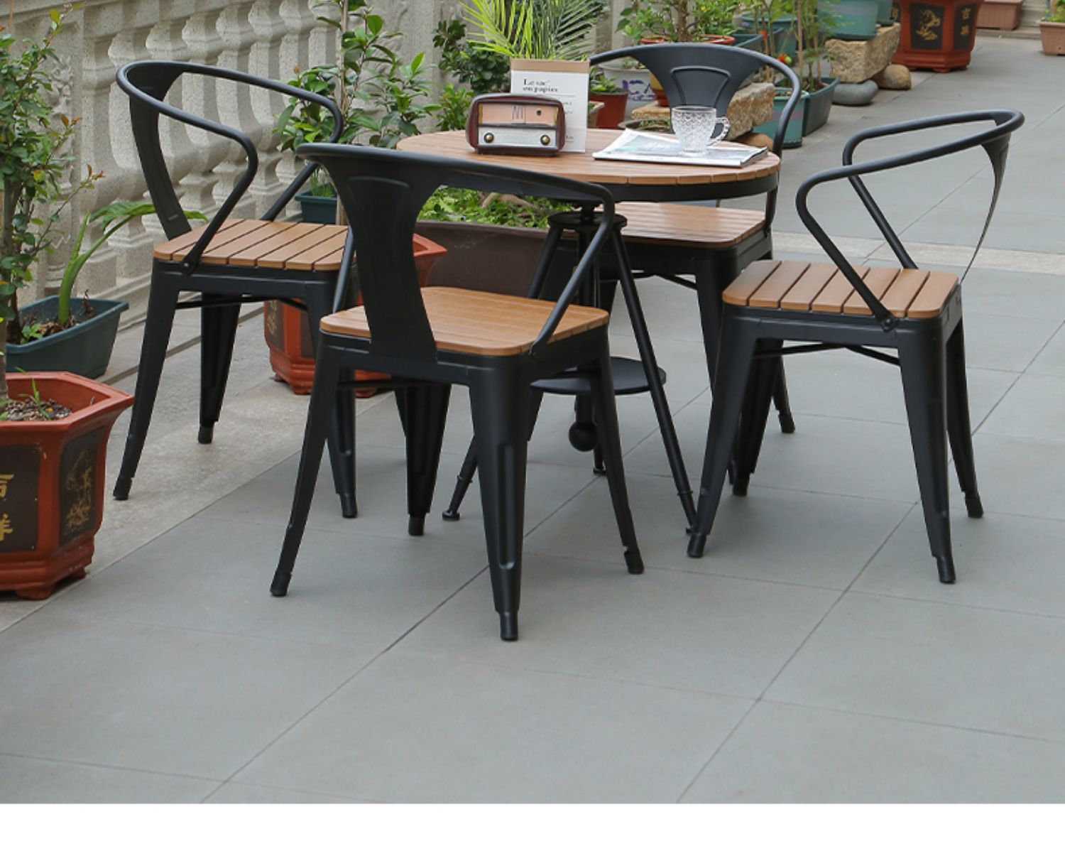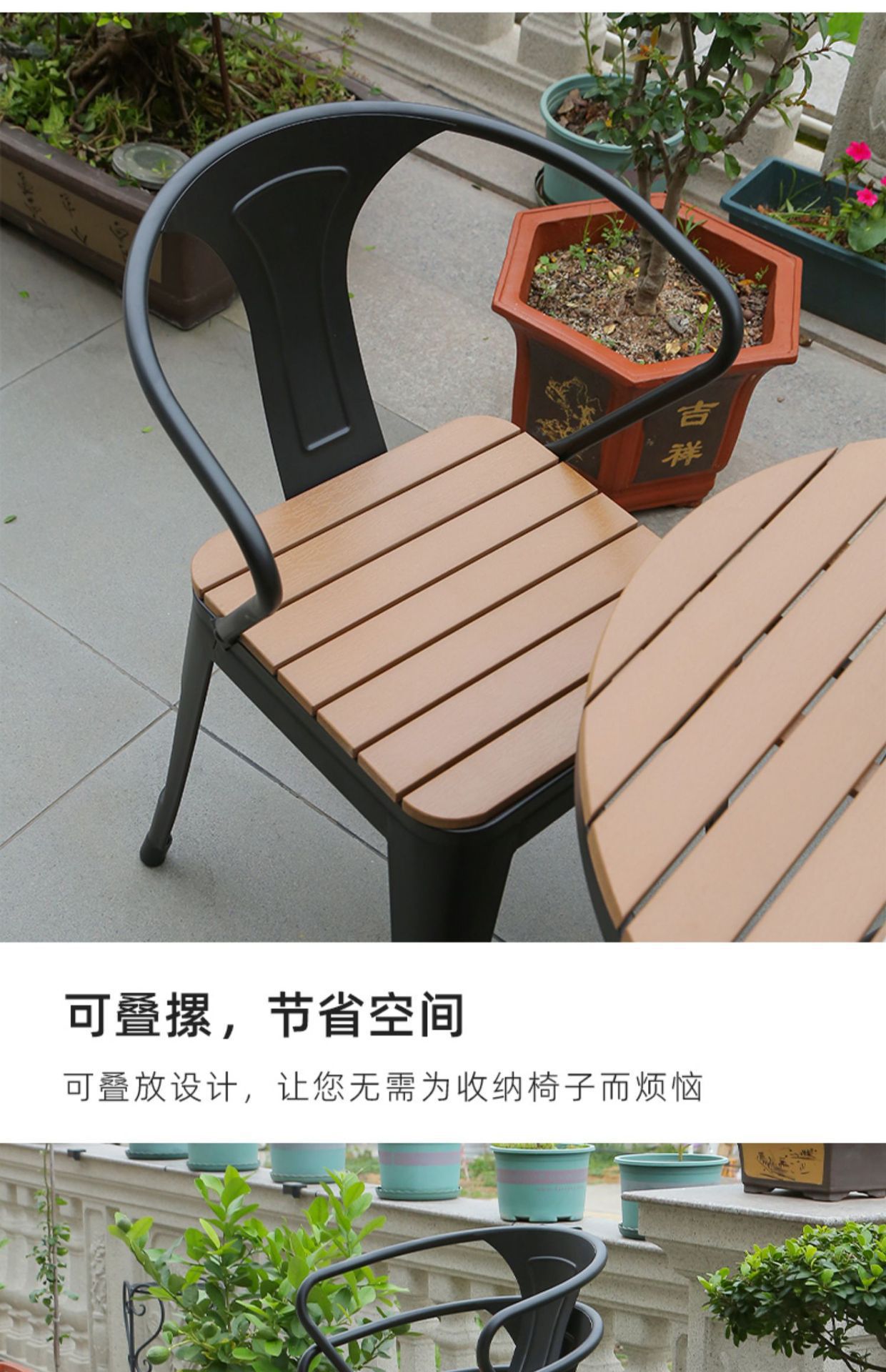 야외 테이블과 의자 발코니 커피 테이블 안뜰 야외 레저 플라스틱 나무 라운드 테이블 밀크 티 숍 외부 식탁 및 의자 1 테이블 및 4 개의 의자