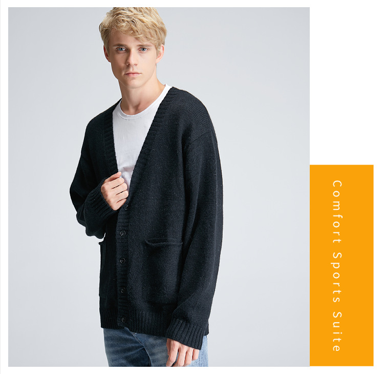 유럽과 미국 JK 트렌디 버전 커플 카디건 스웨터 남성 청소년 캐주얼 게으른 스타일 커플 v 넥 스웨터 재킷