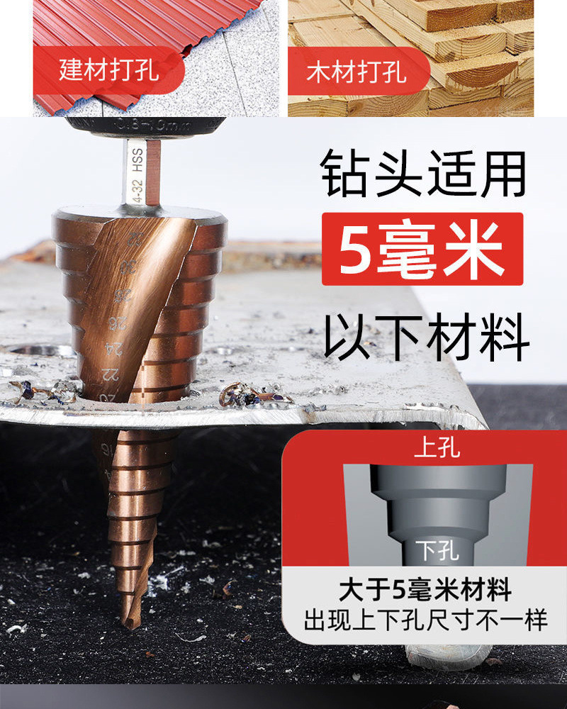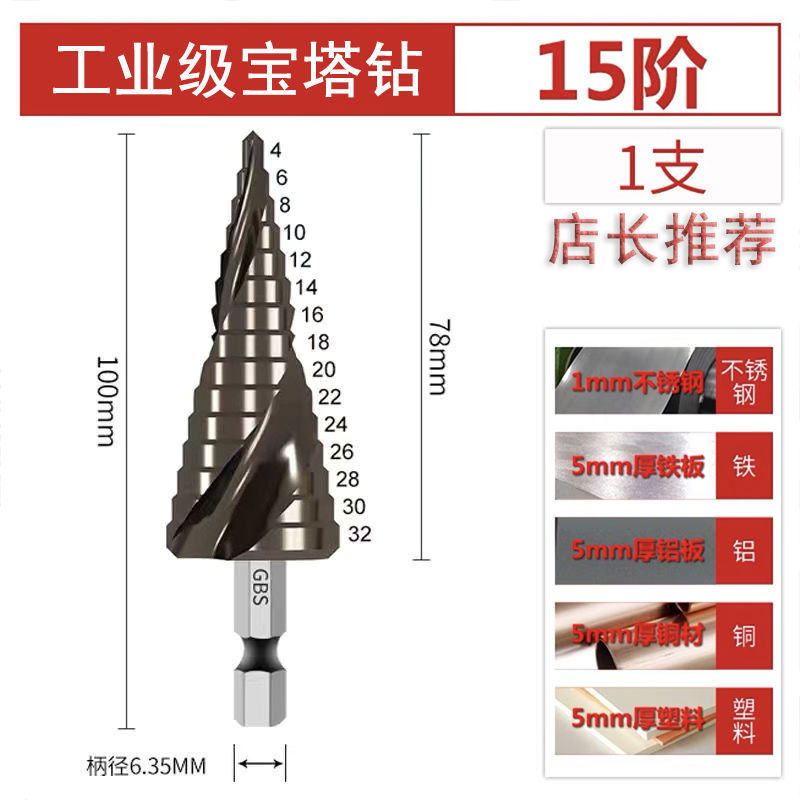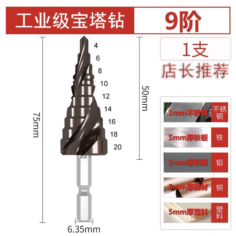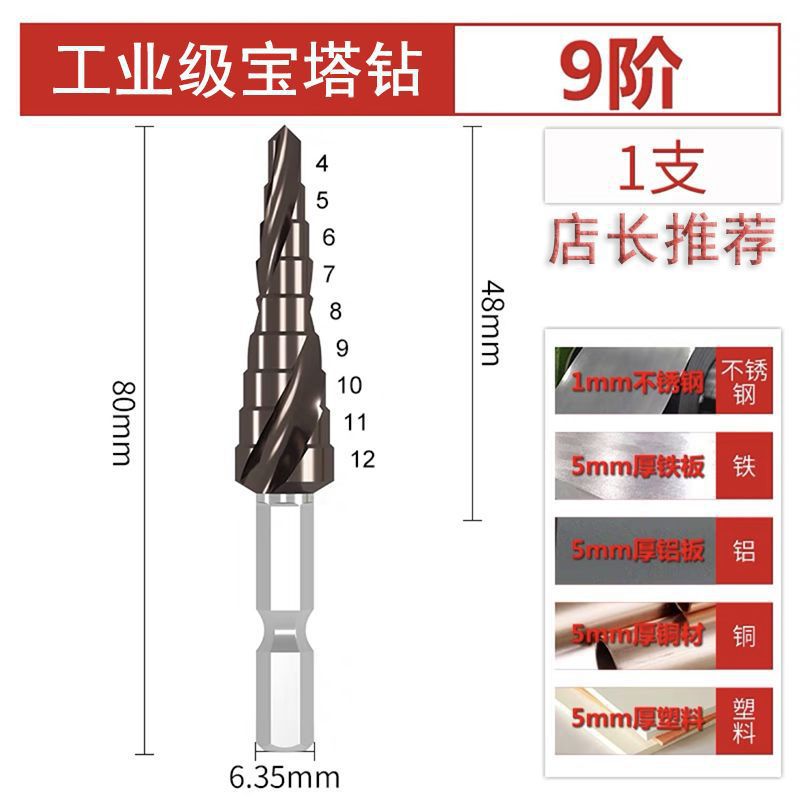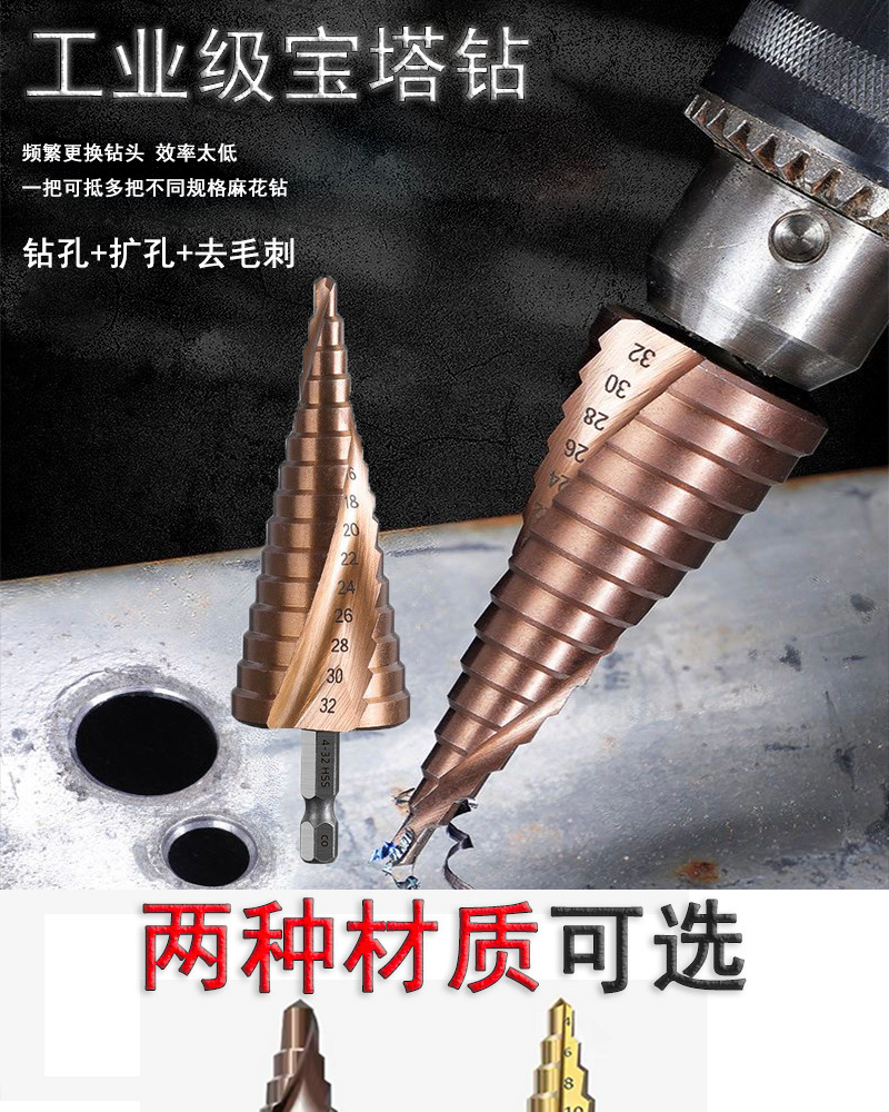 파고다 드릴 리머 스테인레스 스틸 금속 다기능 스텝 테이퍼 홀 오프너 스틸 알루미늄 철판 드릴링