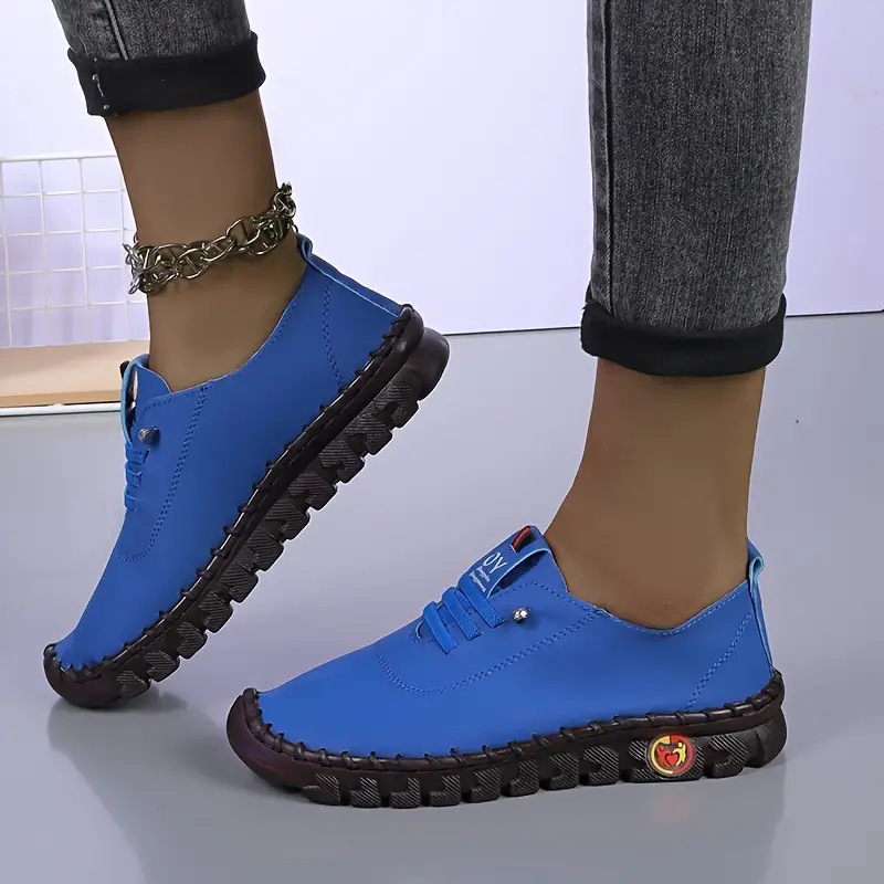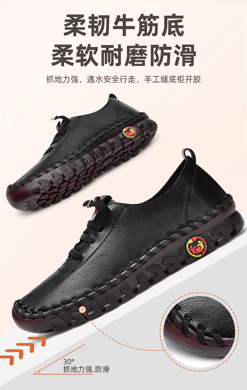 진짜 부드러운 가죽 싱글 레이어 신발 편안한 플랫 레이스 업 신발 엄마를위한 넓은 뚱뚱한 발 쇠고기 솔 부드러운 밑바닥 여성 플러스 사이즈 신발스토어 가기