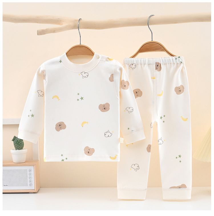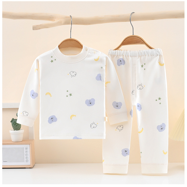 영유아 순면 양복, 남녀 배꼽 보호 스플릿 가을 옷과 긴 바지, 아기 사계절 홈 잠옷