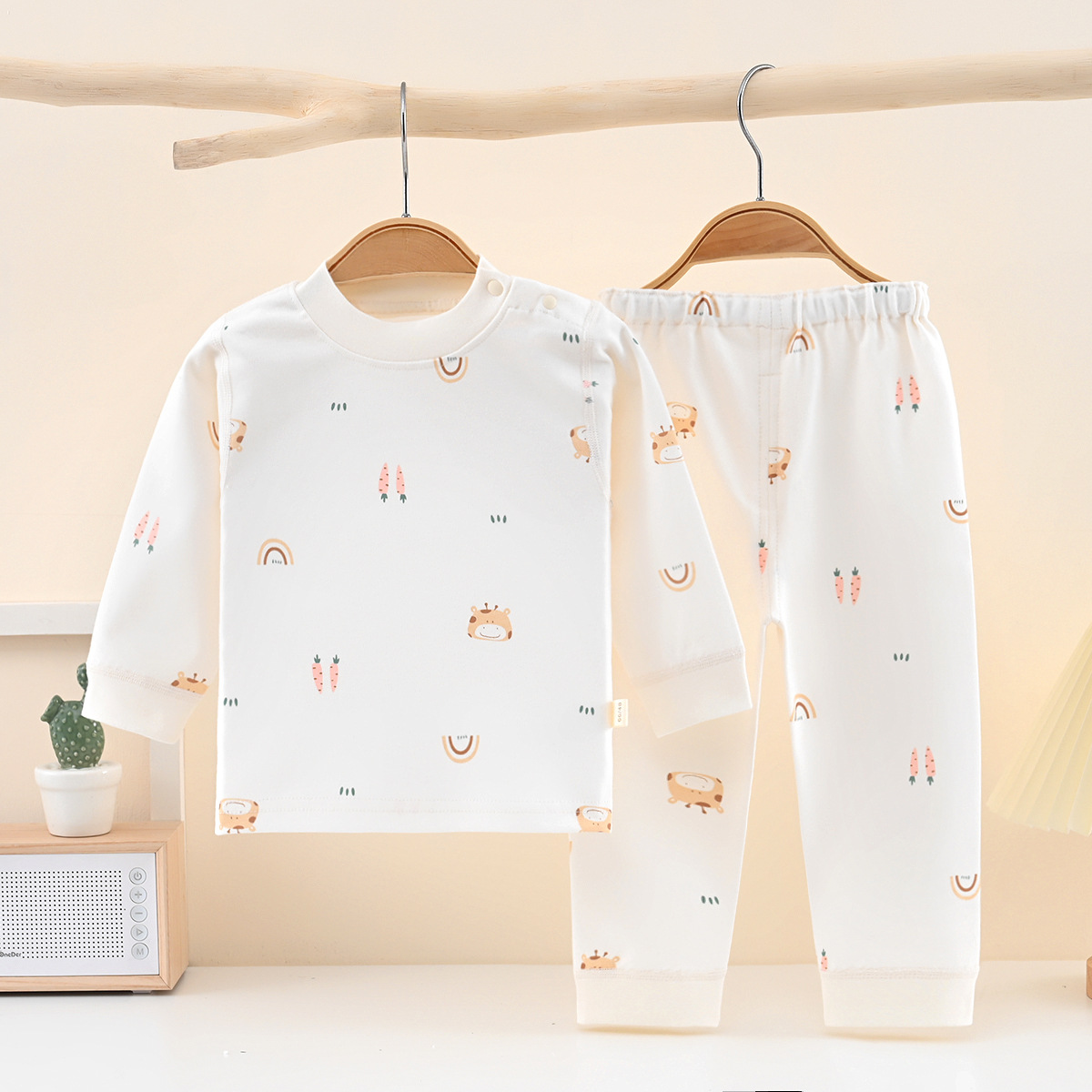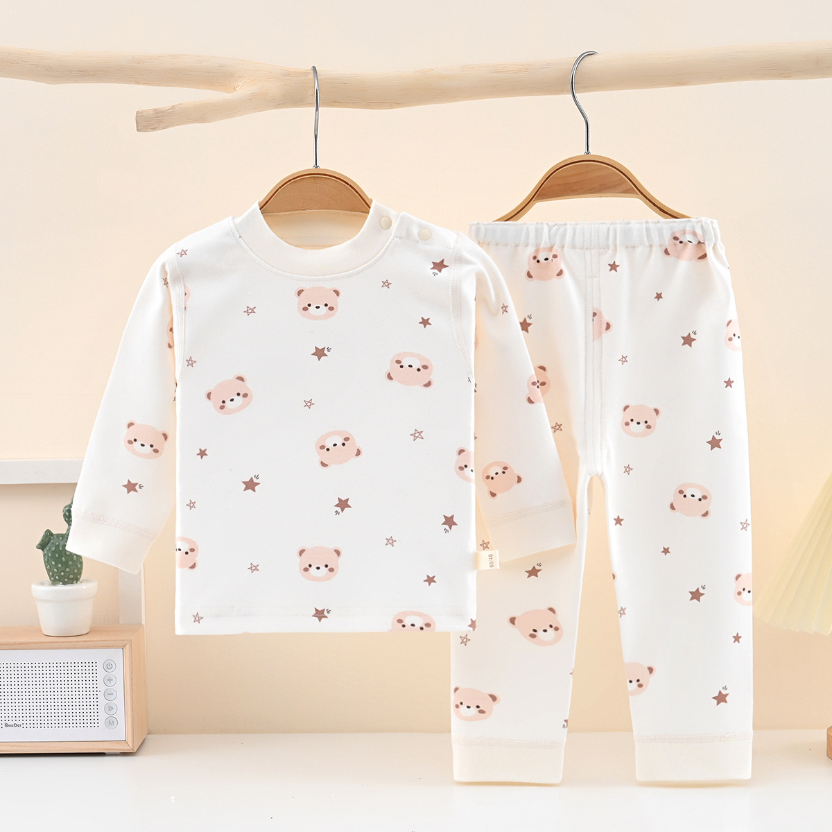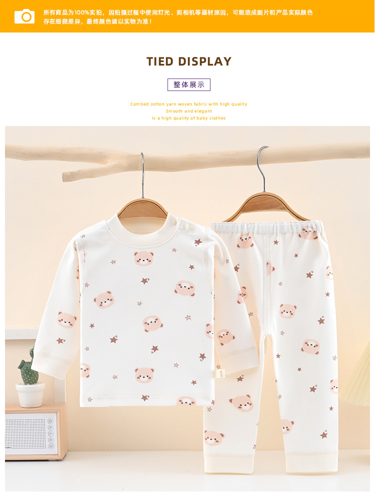 영유아 순면 양복, 남녀 배꼽 보호 스플릿 가을 옷과 긴 바지, 아기 사계절 홈 잠옷스토어 가기