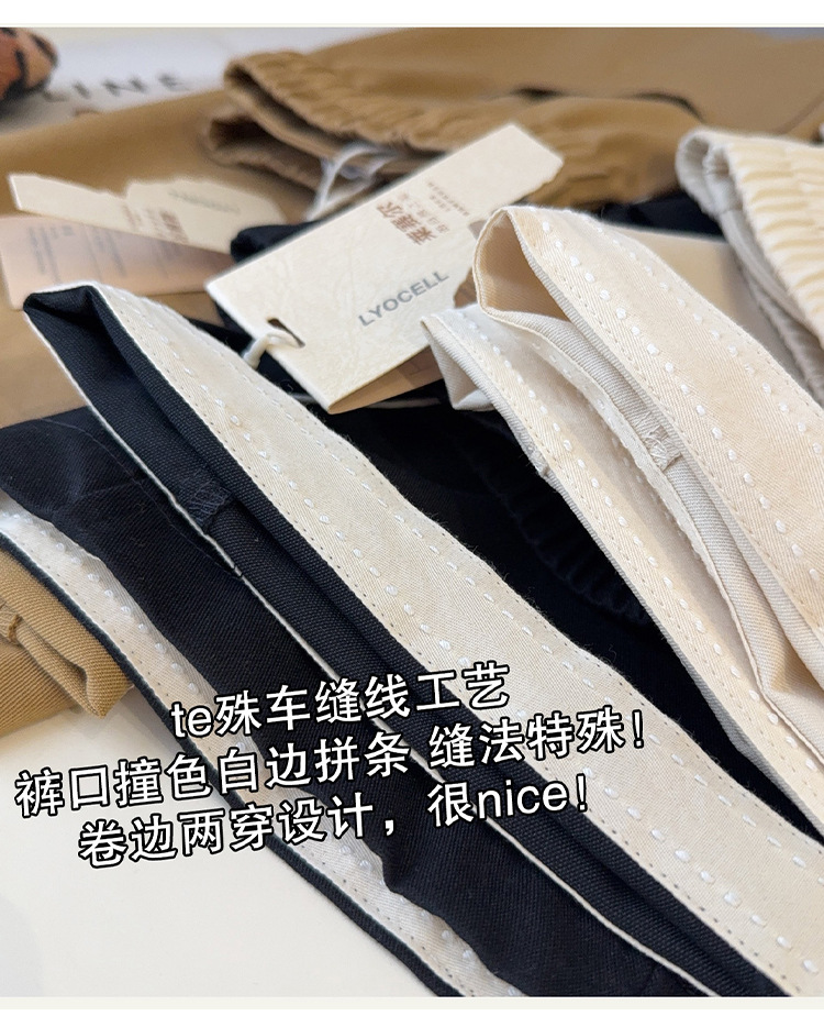 “特色车缝线 裤口撞色白边 也做了特殊隐藏缝法