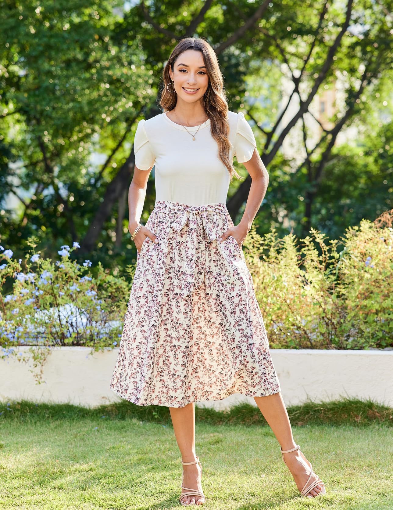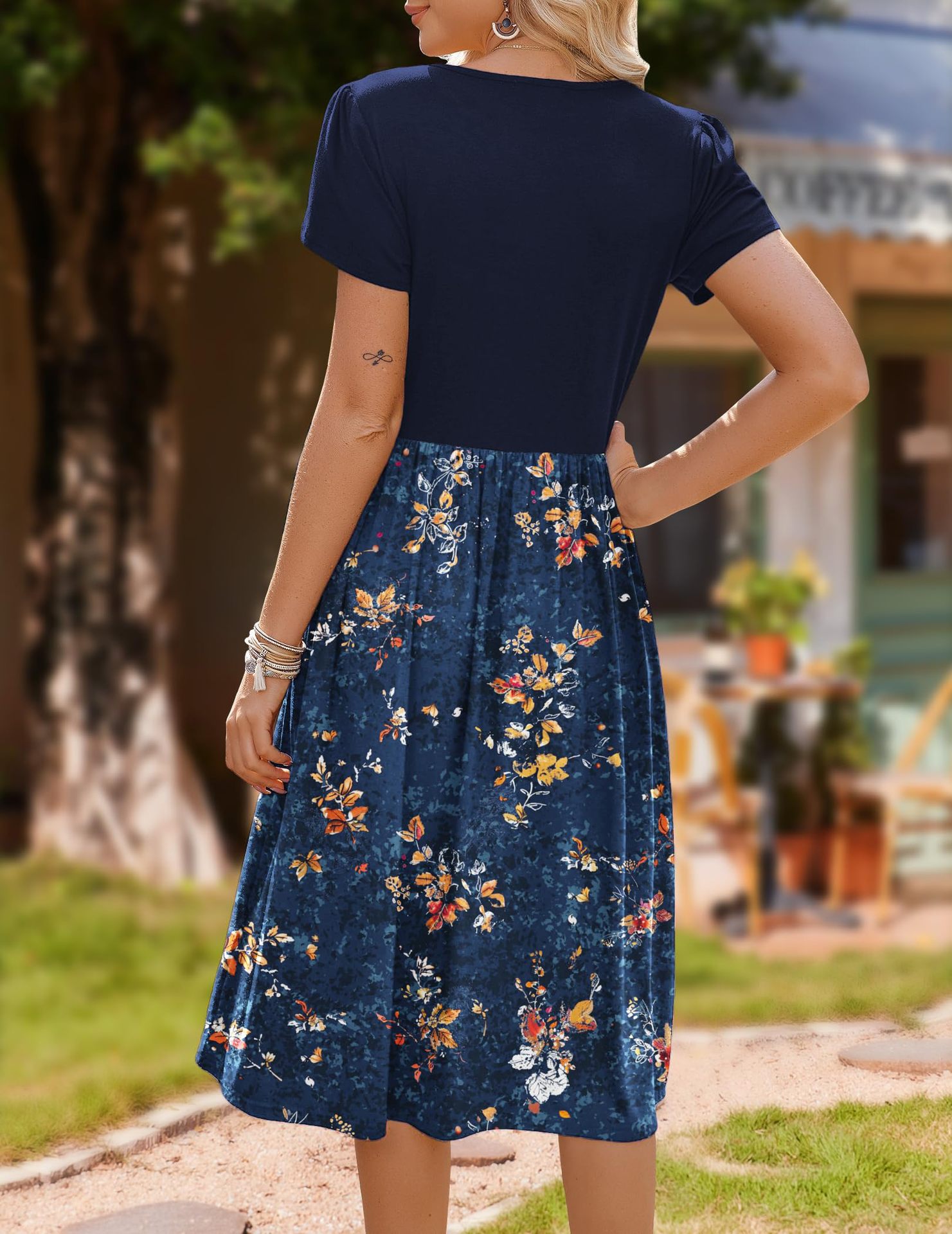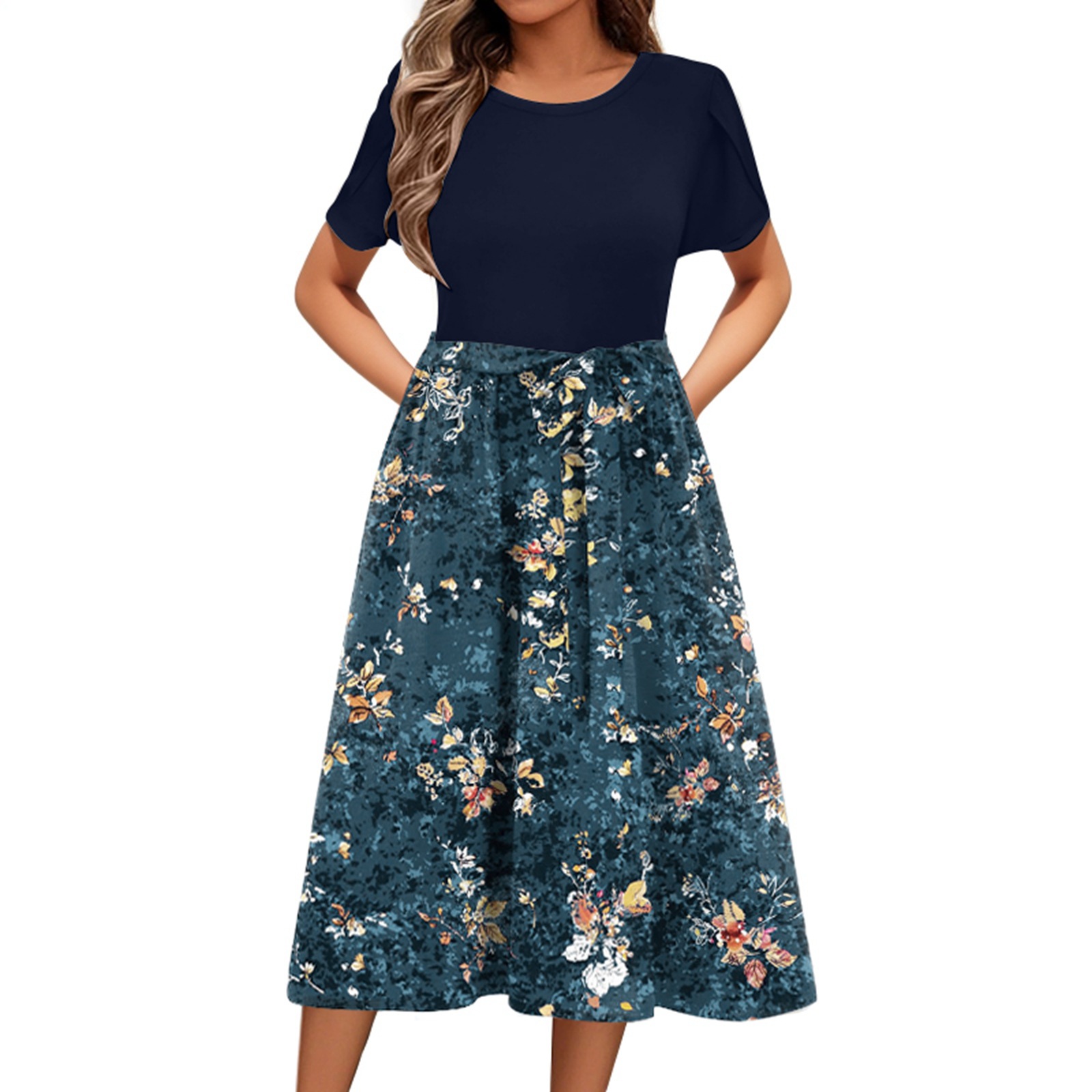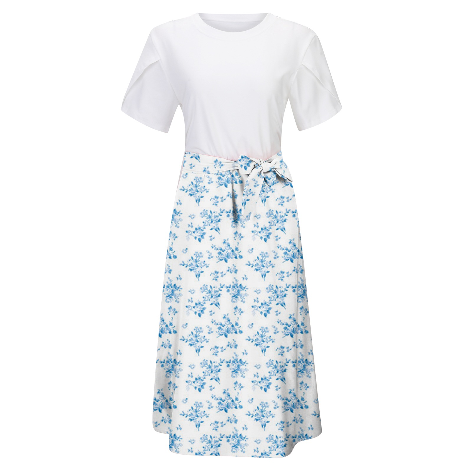 대외 무역 유럽과 미국의 여성 의류 아마존 2025 여름 인쇄 바느질 반팔 원피스 레이스 업 허리 원피스스토어 가기