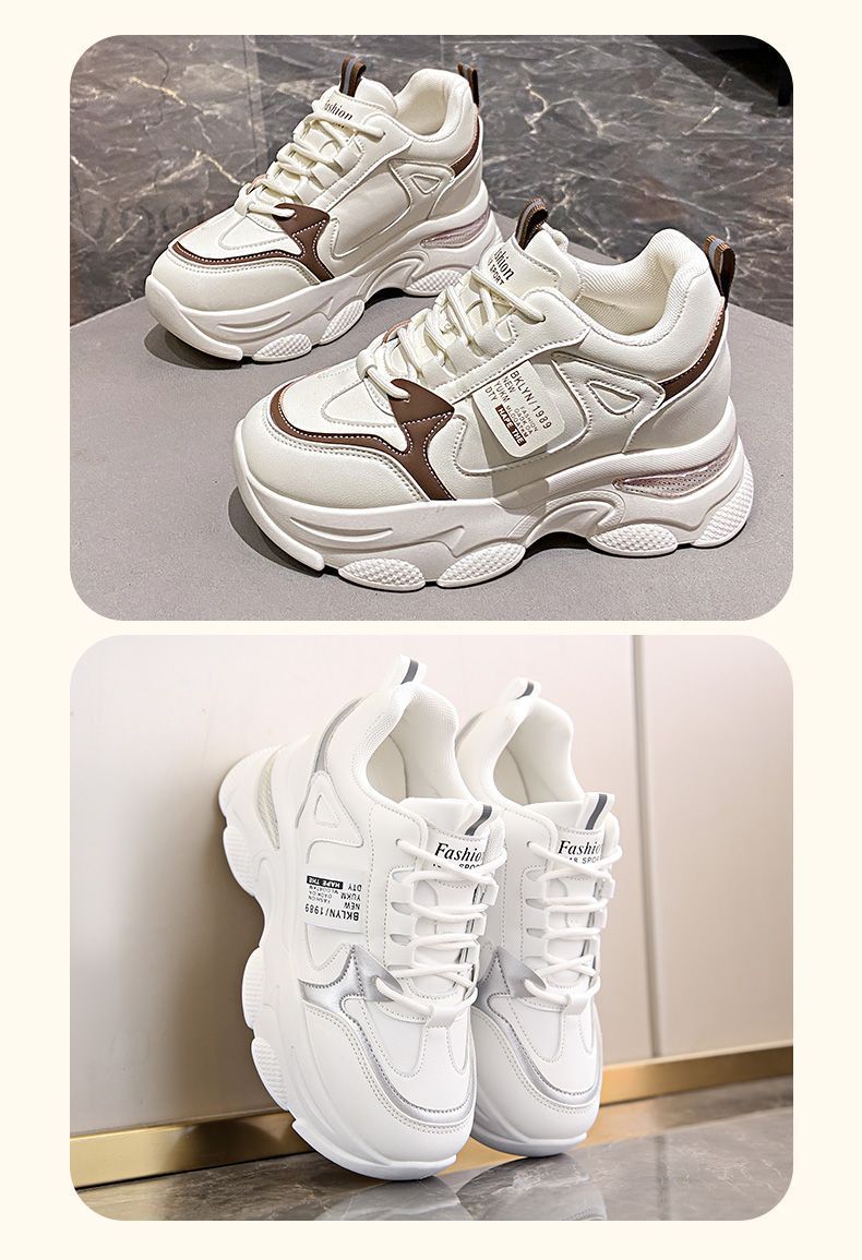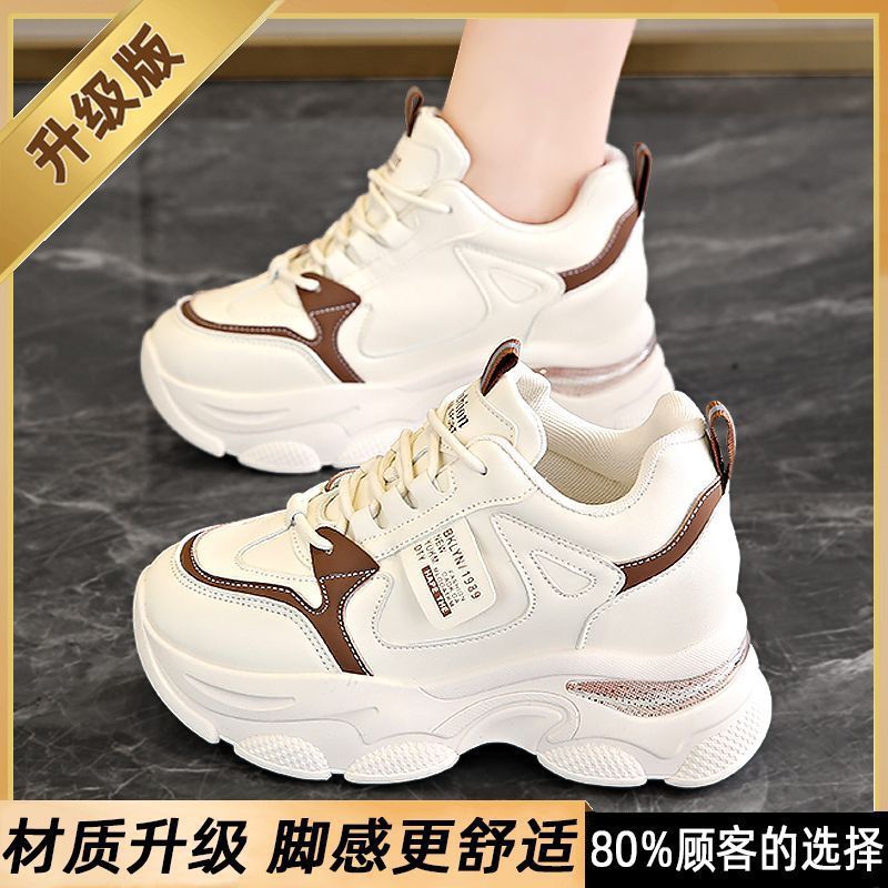내부 높이가 증가한 아빠 신발 2025 신상 여성 봄, 가을 두꺼운 바닥 에어 쿠션 충격 흡수 운동화로 더 작아 보이는 캐주얼 여성 신발스토어 가기