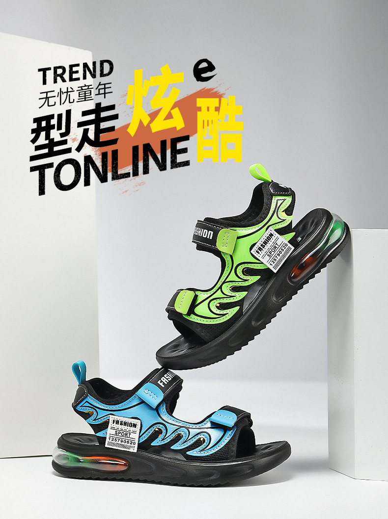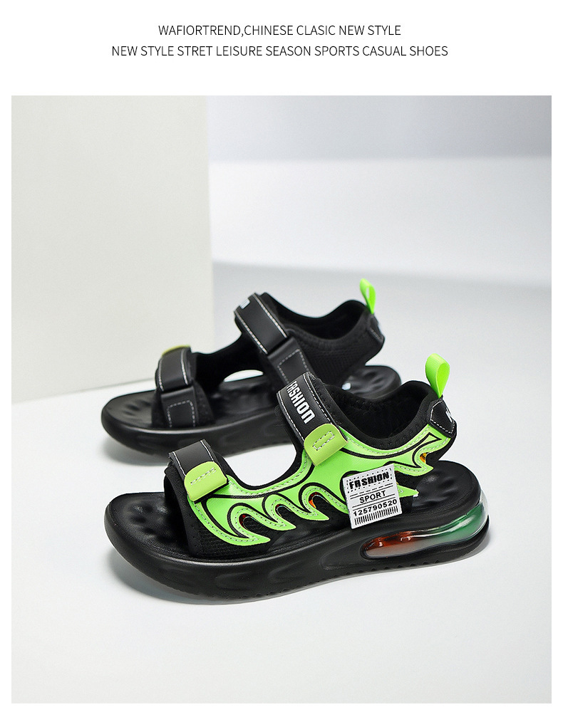 소년 샌들 여름 에어 쿠션 충격 흡수 부드러운 바닥 2024 새로운 어린이 스포츠 비치 신발 미끄럼 방지 중형 및 대형 소년