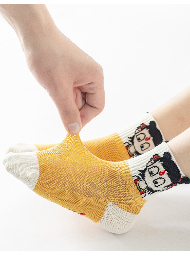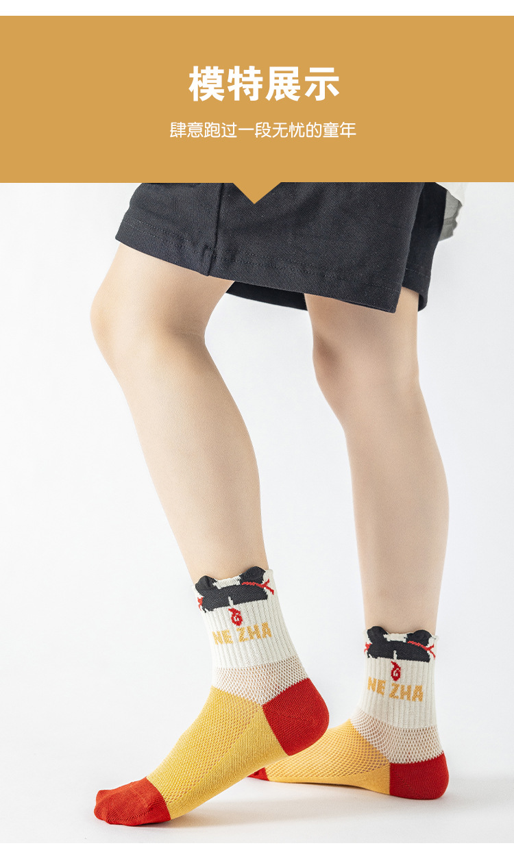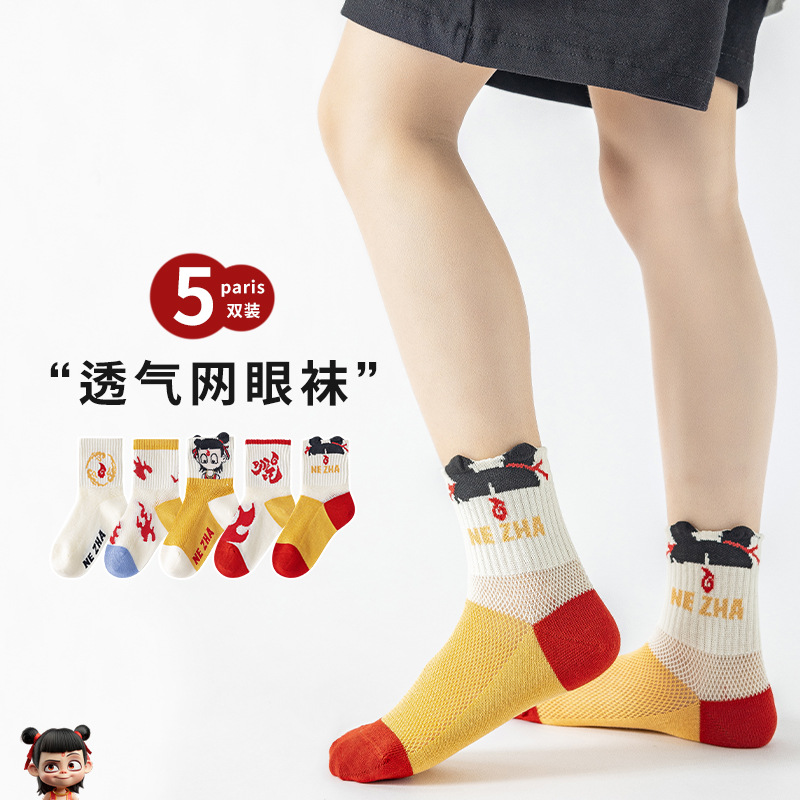 Nezha 양말 어린이 여름 얇은 면 메쉬 양말 도매 만화 소녀와 소년 양말 봄과 여름 튜브 양말스토어 가기
