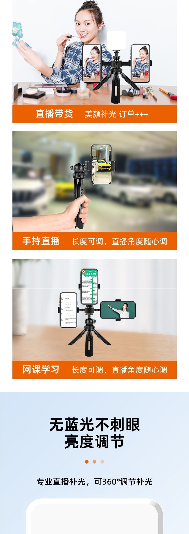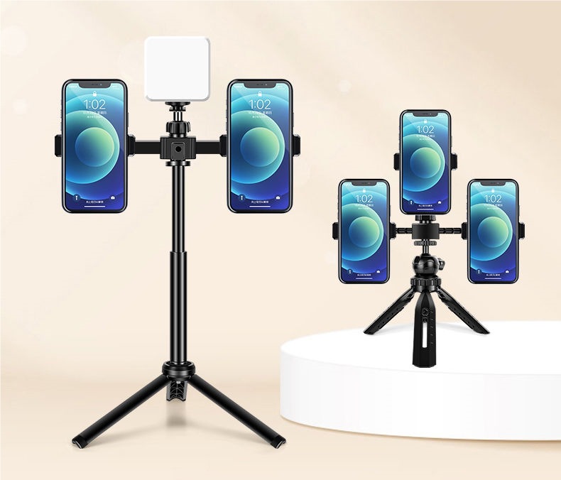 휴대용 라이브 방송 브래킷 듀얼 휴대 전화 비디오 촬영 멀티 위치 4S 스토어 오토 쇼 흔들어 음성 셀프 타이머 Vlog 야외 휴대용