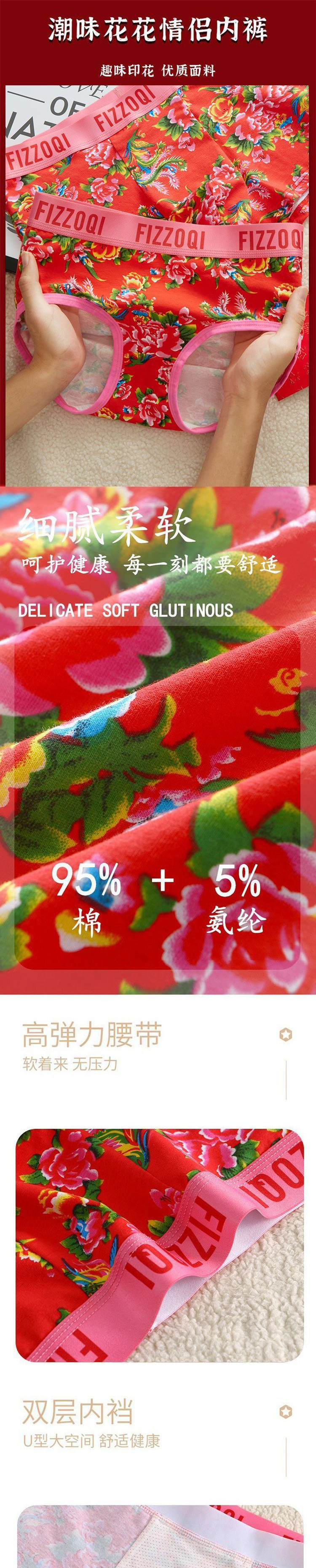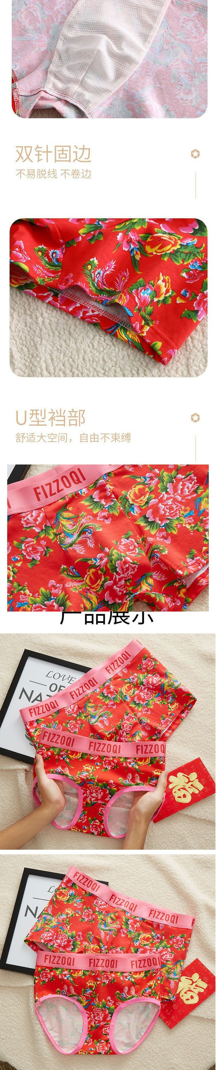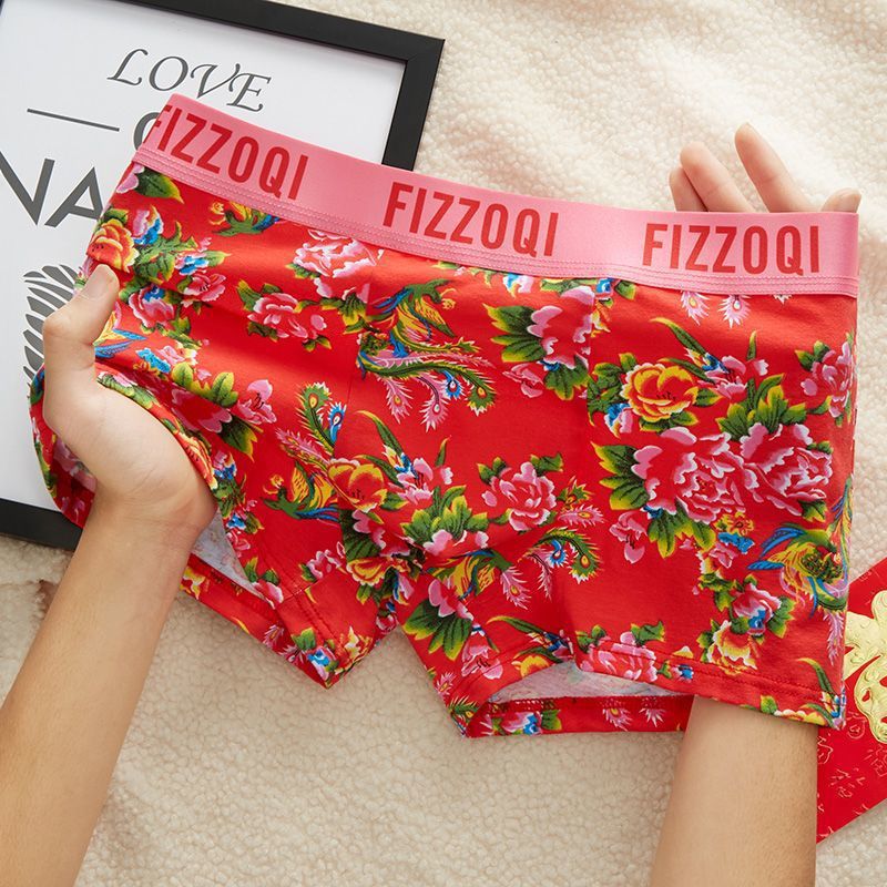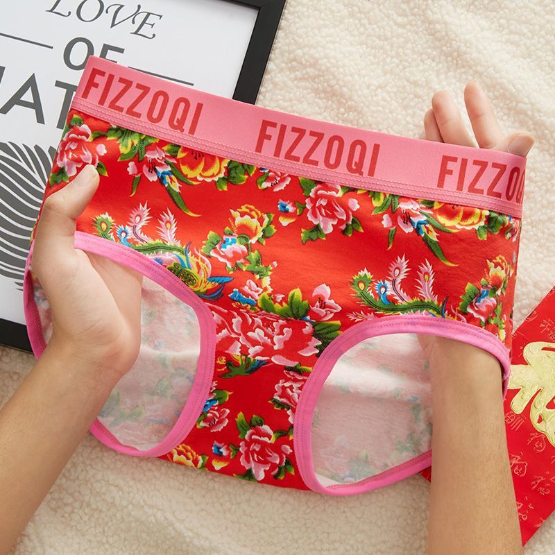 빨간색 아동 속옷, 면 사각 팬티, 순면 삼각형 중간 허리, 북동쪽 큰 꽃무늬, 통기성 및 패셔너블한 내부 레이어