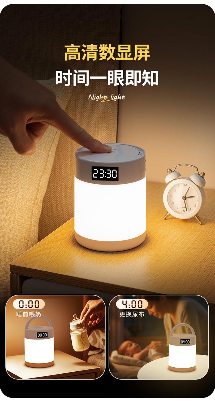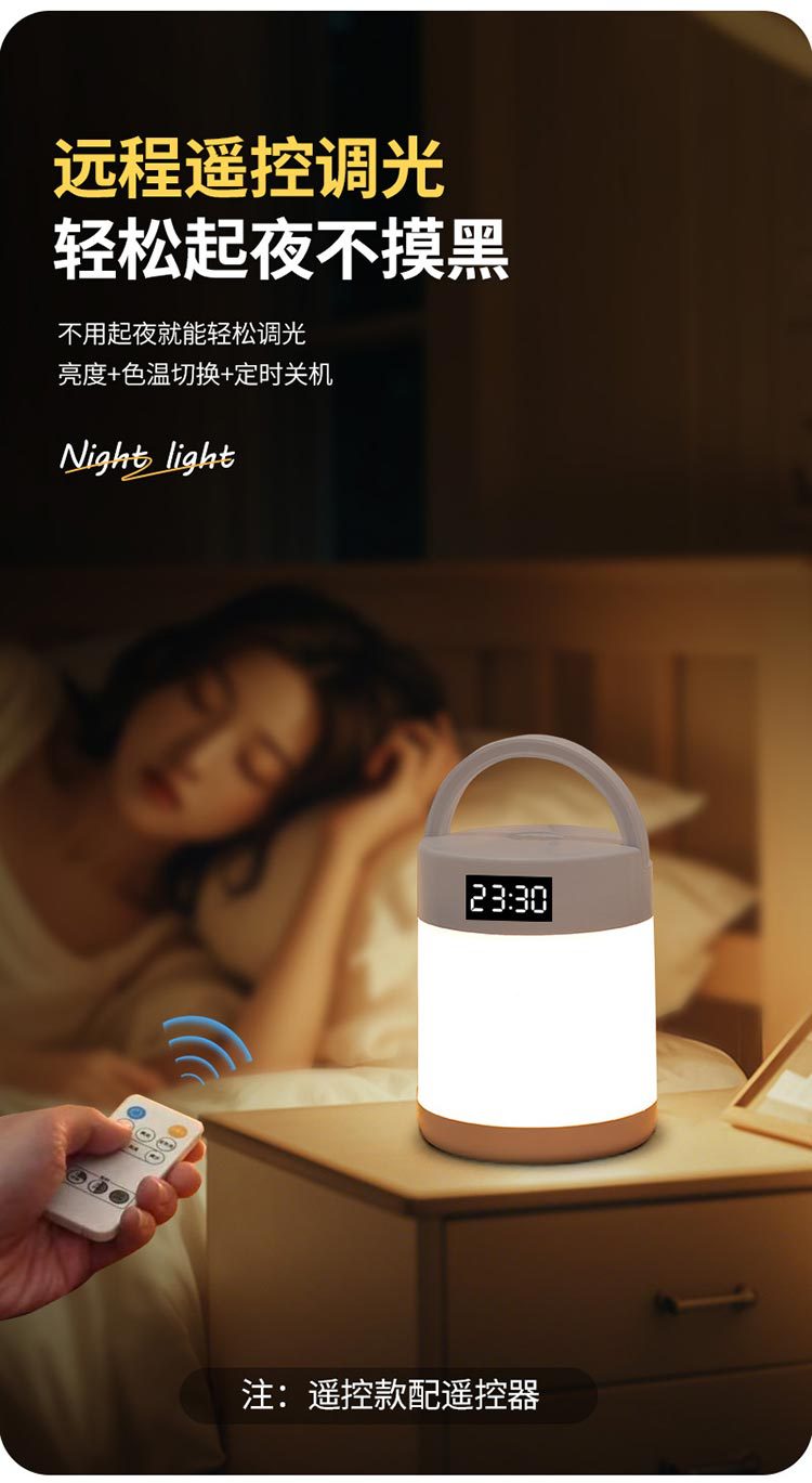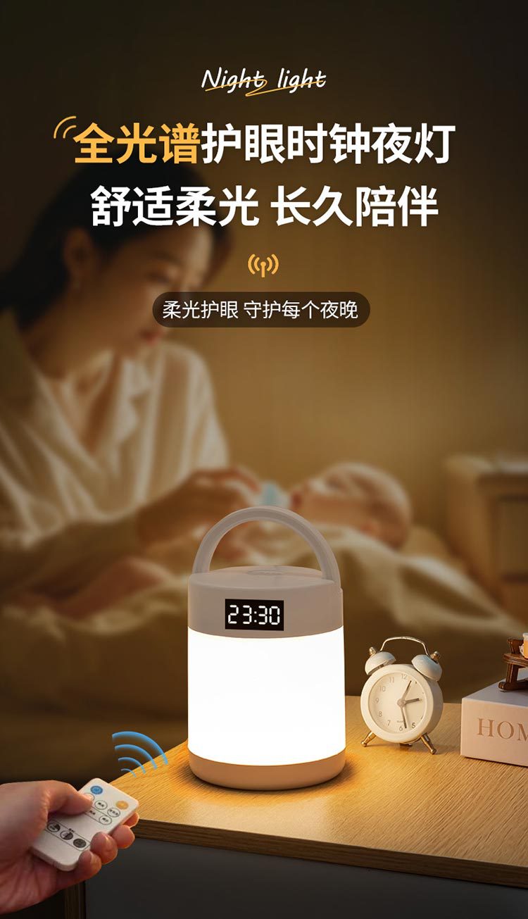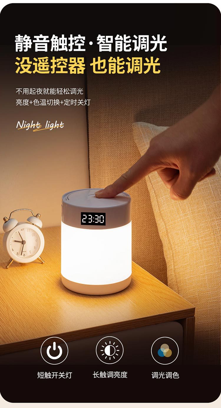 야간 조명 시계 침실 수면 램프 책상 램프 충전 터치 원격 제어 침대 옆 램프 아기 먹이 눈 보호 램프
