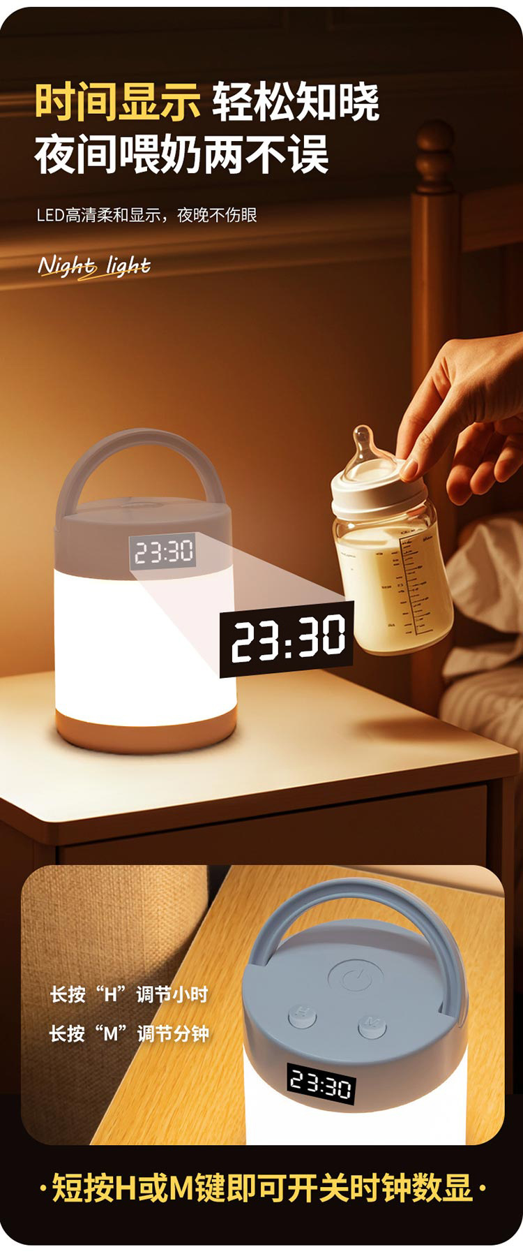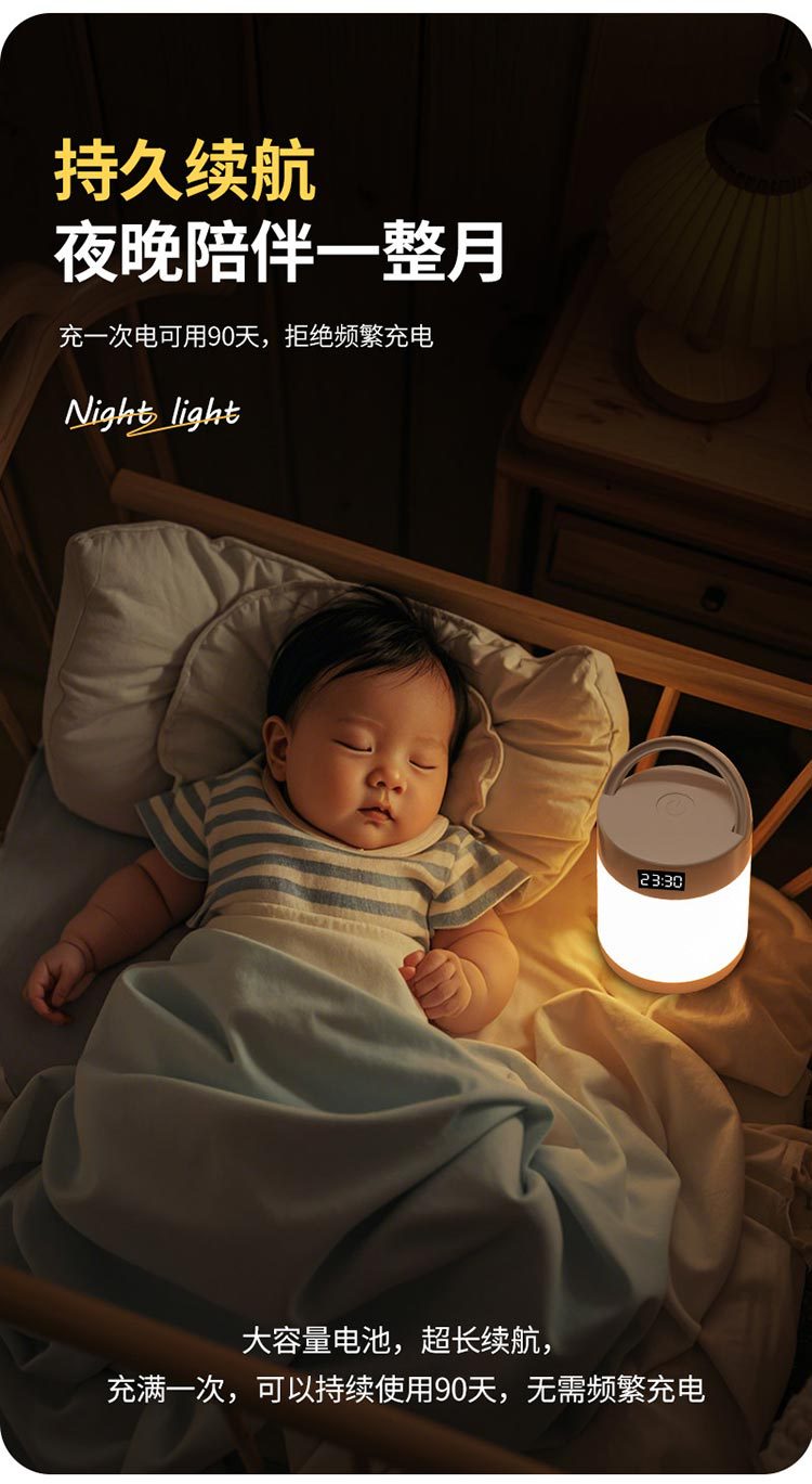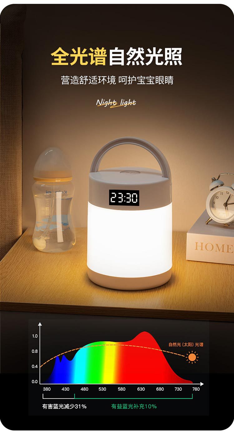 야간 조명 시계 침실 수면 램프 책상 램프 충전 터치 원격 제어 침대 옆 램프 아기 먹이 눈 보호 램프