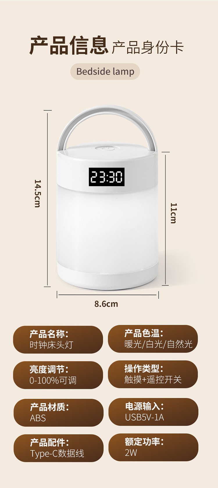 • [화이트 시계 충전 모델] XH4000 디밍 가능 색상 + 케이블