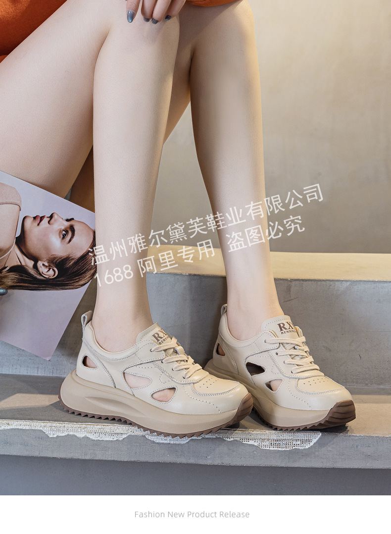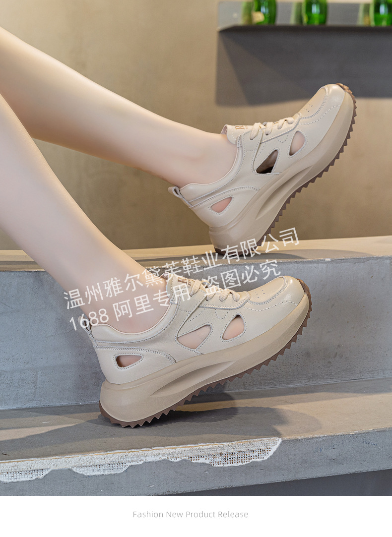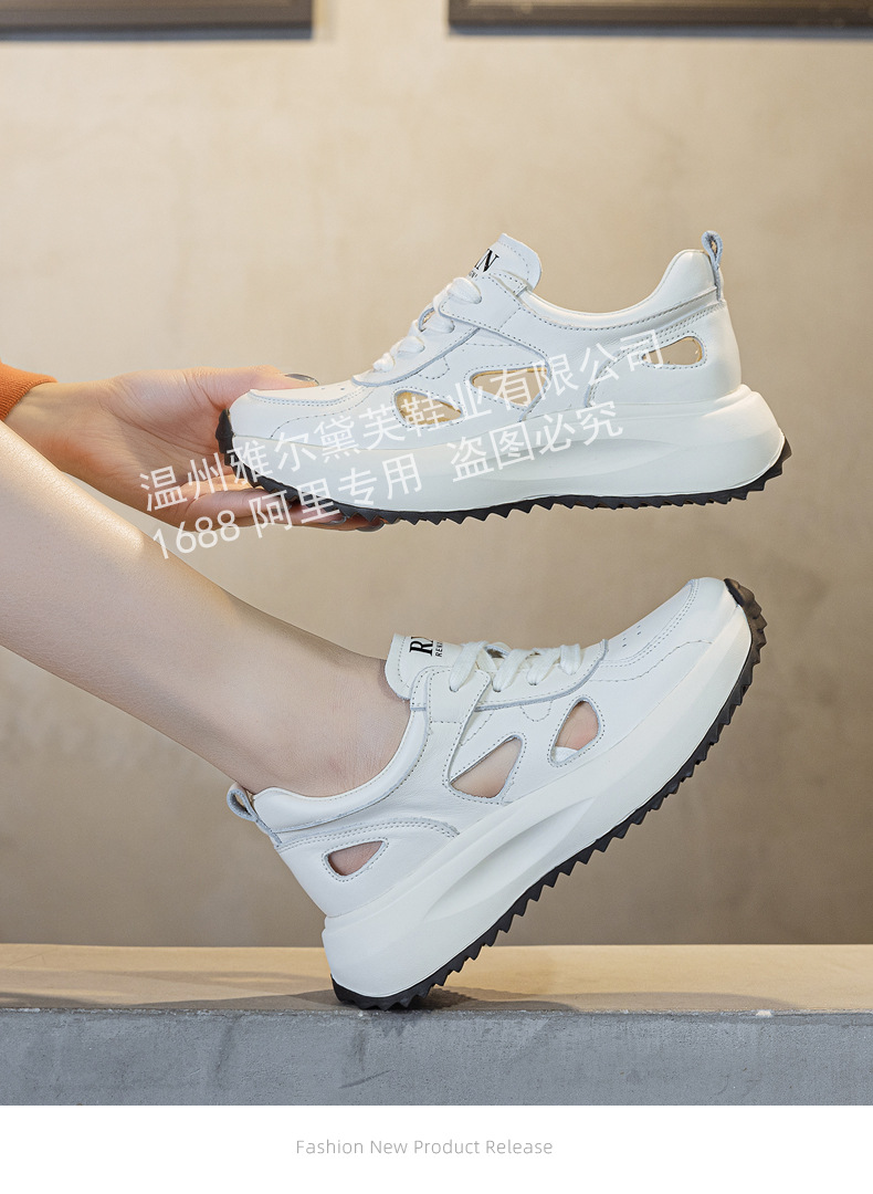 2025 여름 탑 레이어 소 가죽 새로운 속이 빈 샌들 여성 복고풍 속이 빈 캐주얼 신발 여성용 색상과 두꺼운 밑창 여성 신발스토어 가기