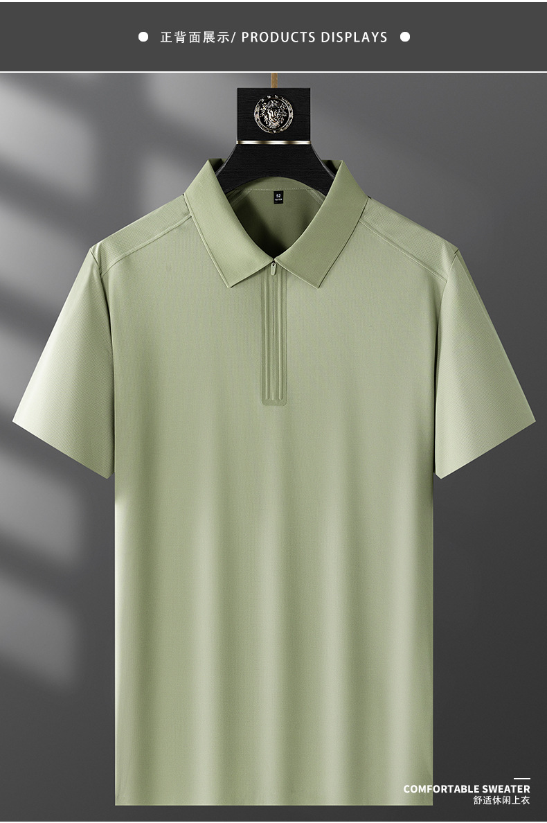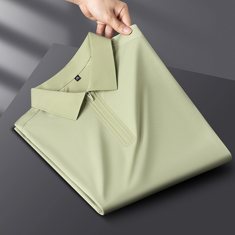 하이 엔드 여름 원활한 압력 접착제 아이스 센스 반팔 폴로 셔츠 남성용 슬림 핏 패션 캐주얼 지퍼 립 반소매 티셔츠스토어 가기