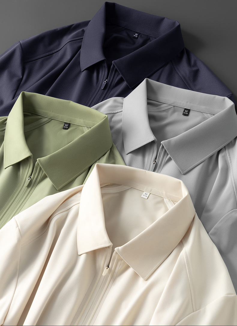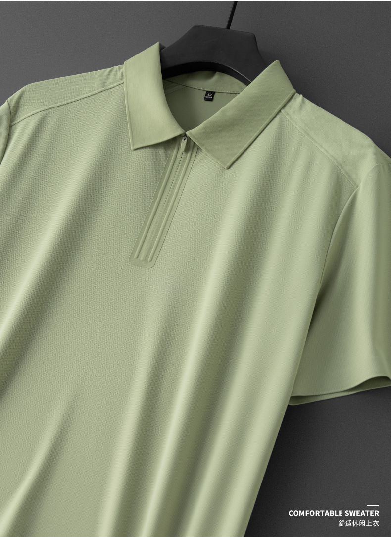 하이 엔드 여름 원활한 압력 접착제 아이스 센스 반팔 폴로 셔츠 남성용 슬림 핏 패션 캐주얼 지퍼 립 반소매 티셔츠