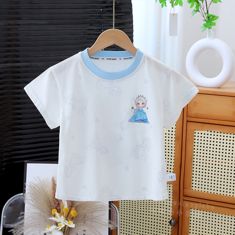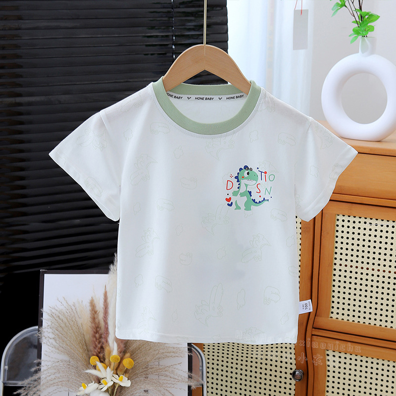 [가벼운 변화 반팔] 어린이 만화 면 티셔츠 소년 소녀 느슨한 반소매 컬러 인쇄 셔츠 태양 아래