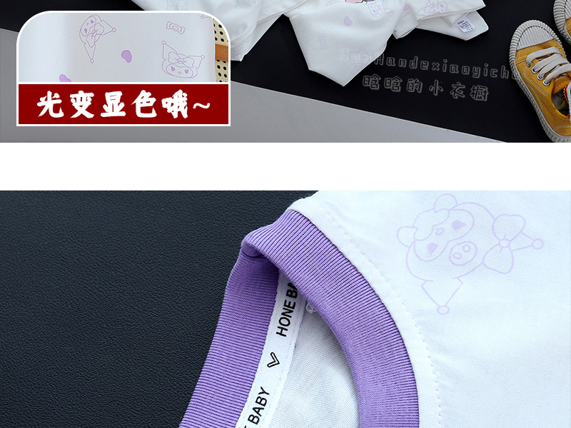 [가벼운 변화 반팔] 어린이 만화 면 티셔츠 소년 소녀 느슨한 반소매 컬러 인쇄 셔츠 태양 아래스토어 가기