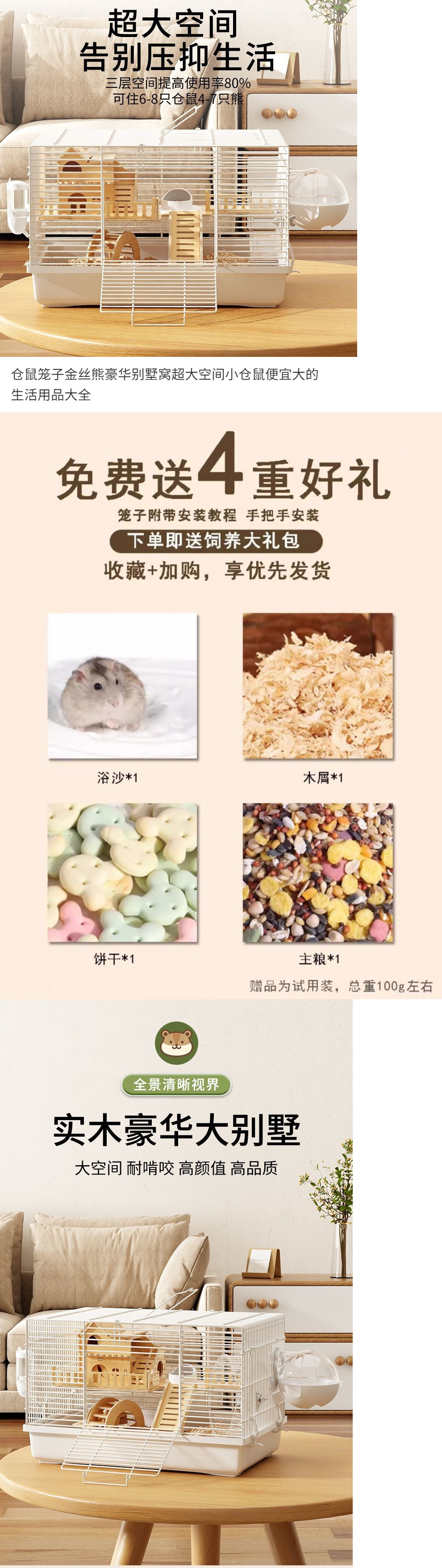 작은 햄스터 럭셔리 빌라, 저렴하고 큰 금곰 케이지, 씹힘 방지 및 탈출 방지 특수 케이지 용품 세트스토어 가기