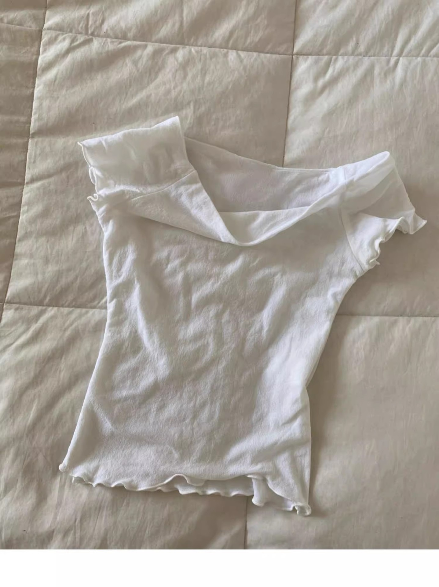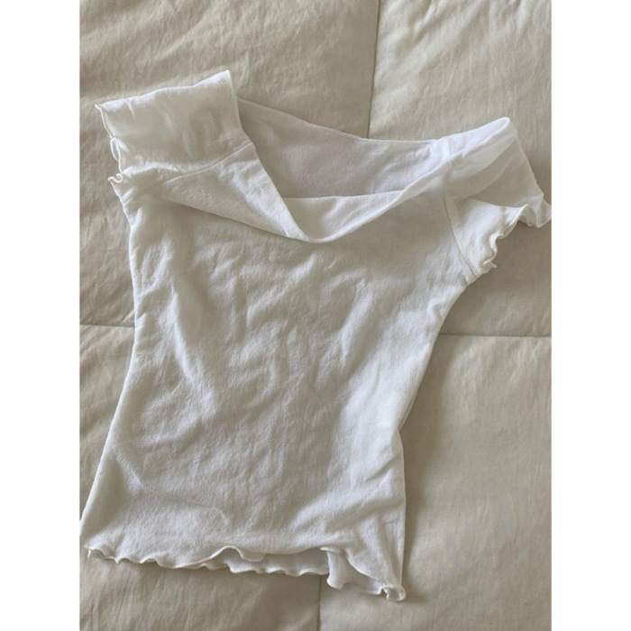 여성용 원 숄더 화이트 반팔 티셔츠 2025 여름 신작 틈새 슬림핏 디자인 버진 에지 탑