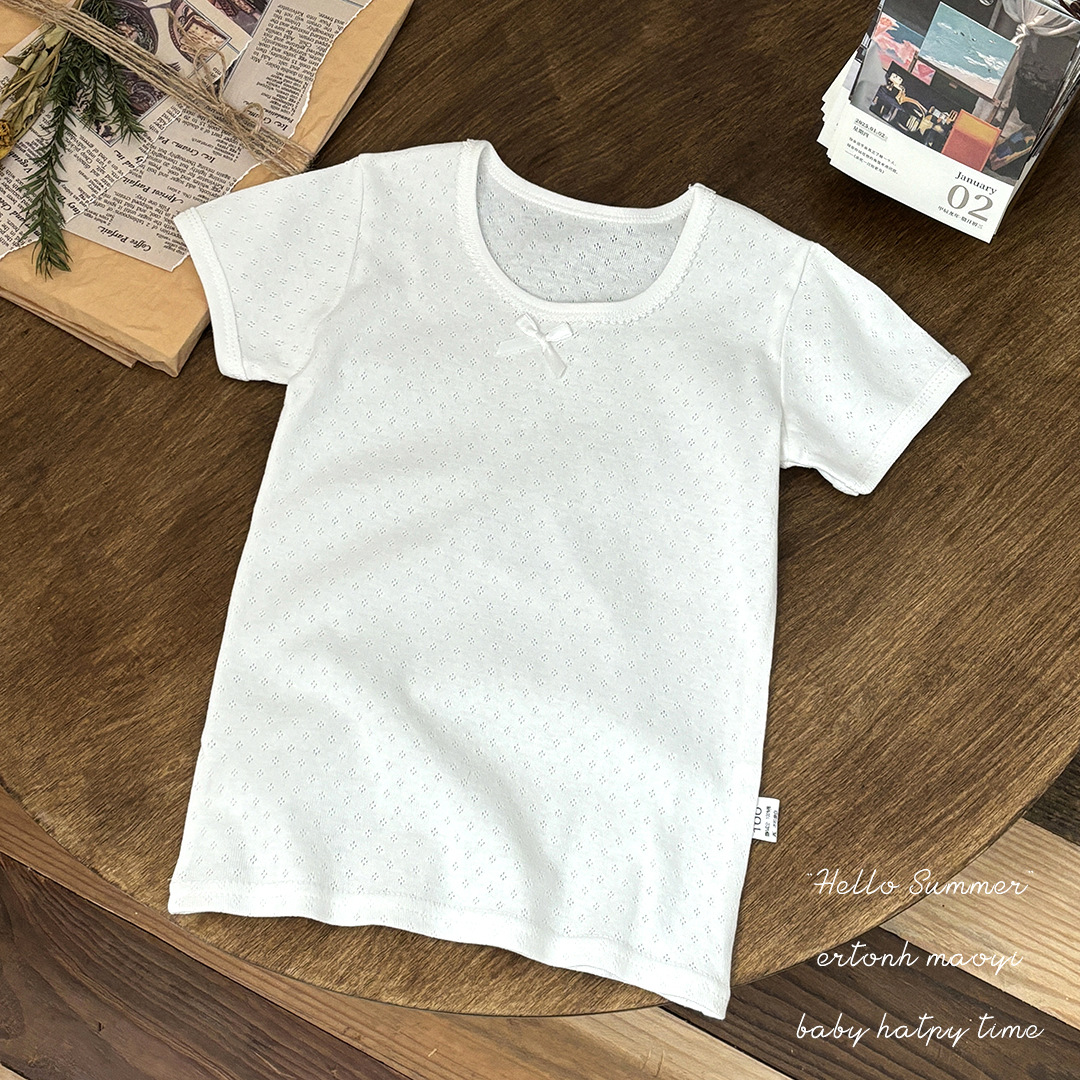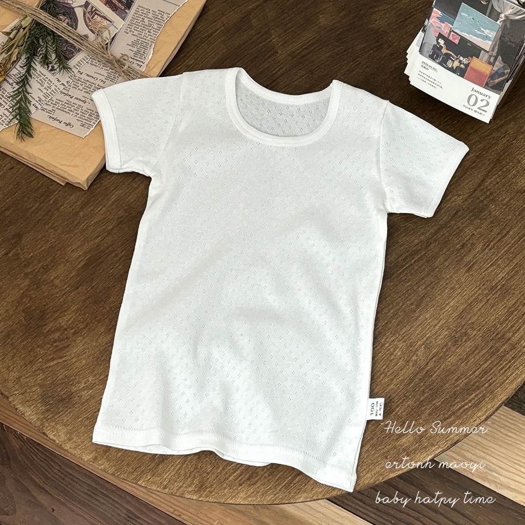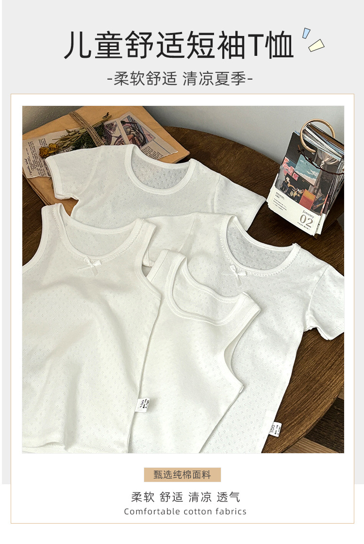 일본 순면 소년과 소녀 반팔 조끼 단색 아동 의류 메쉬 조끼 투피스 드롭 배송