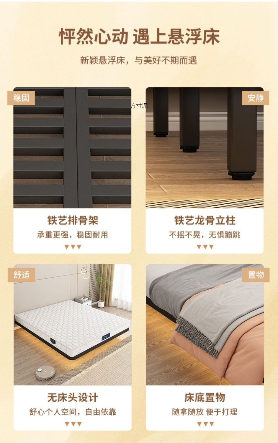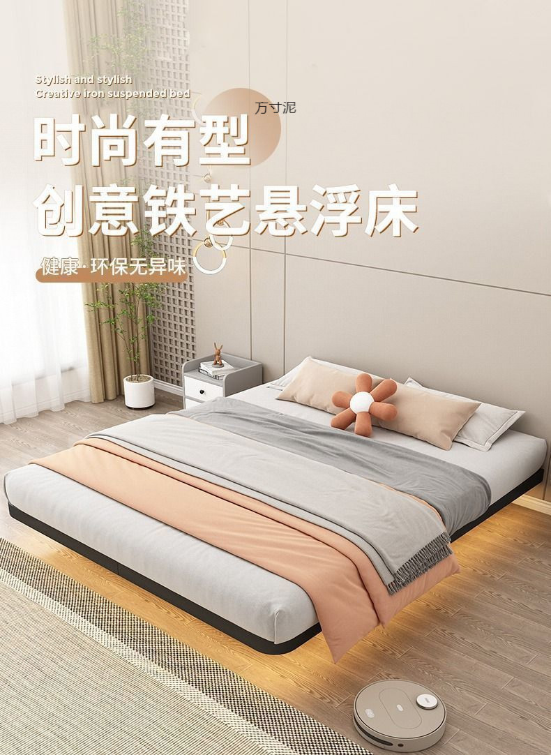 서스펜션 침대 현대 간단한 침대 옆 일본식 미니멀리스트 아이언 더블 침대 타타타미 스켈레톤 마스터 침실 아이언 침대스토어 가기