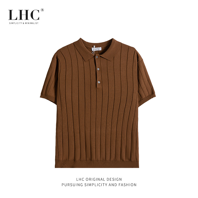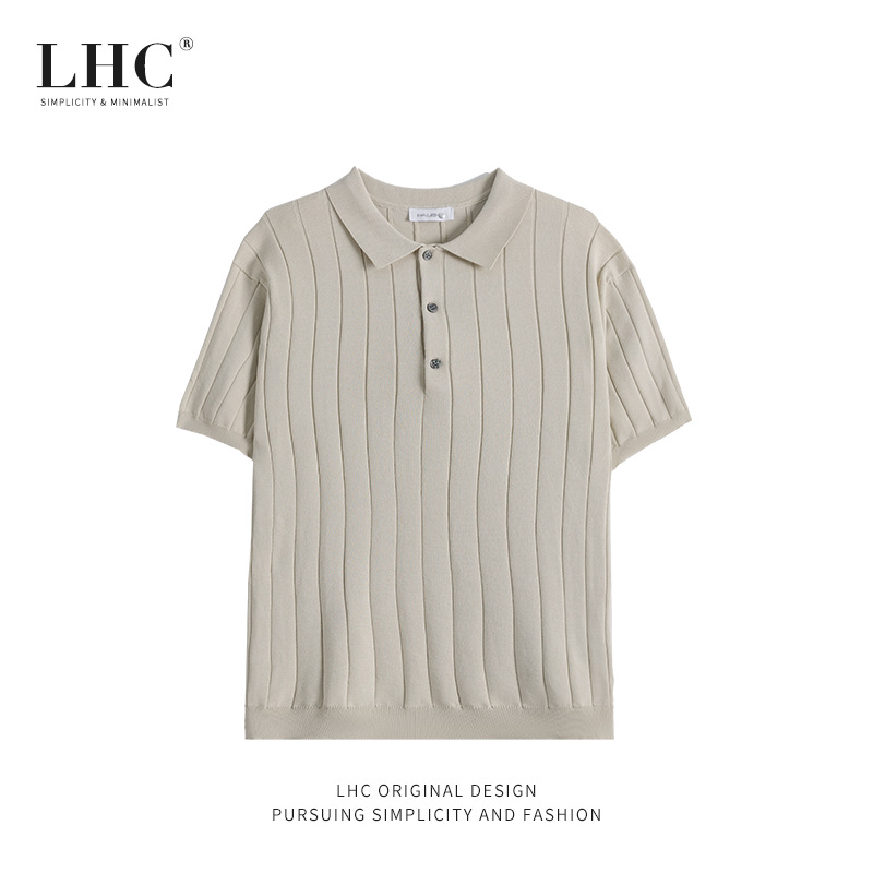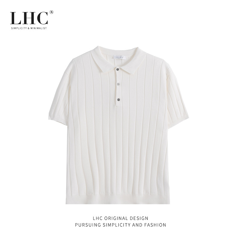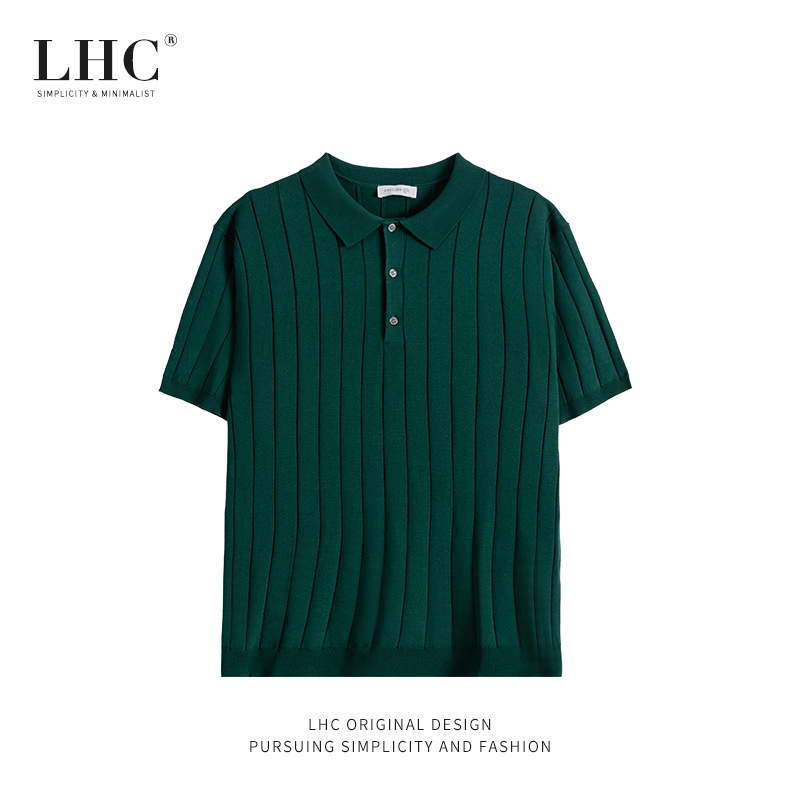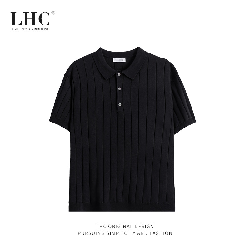 LHC 남자 아이스 실크 니트 남자 폴로 셔츠 하이 센스 비즈니스 폴 짧은 소매 여름 남자 칼라 티셔츠
