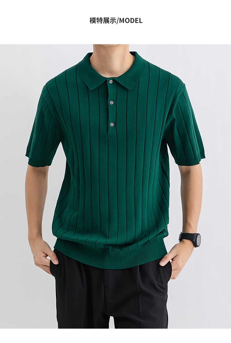 LHC 남자 아이스 실크 니트 남자 폴로 셔츠 하이 센스 비즈니스 폴 짧은 소매 여름 남자 칼라 티셔츠스토어 가기