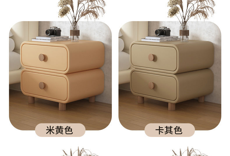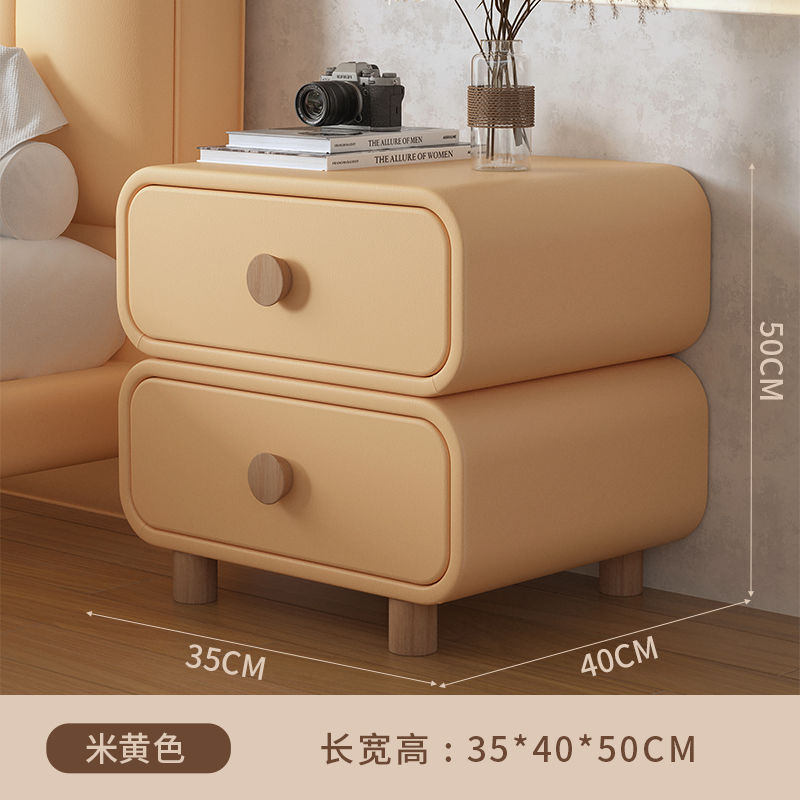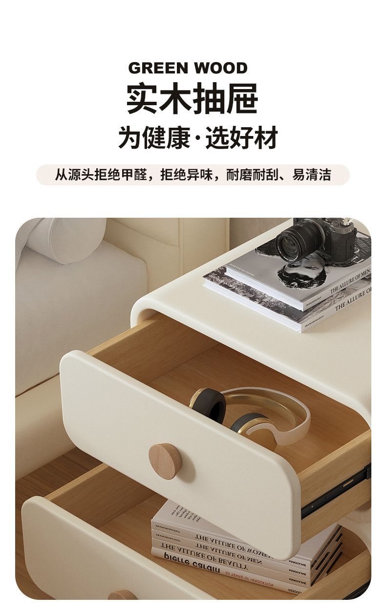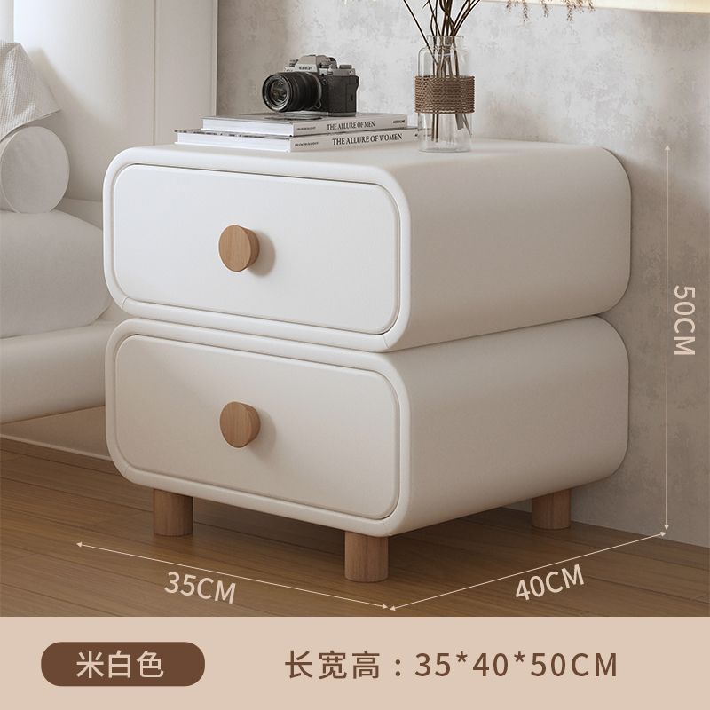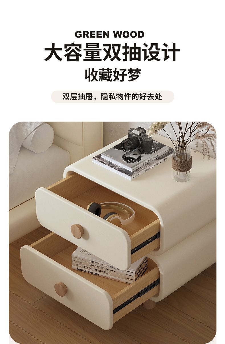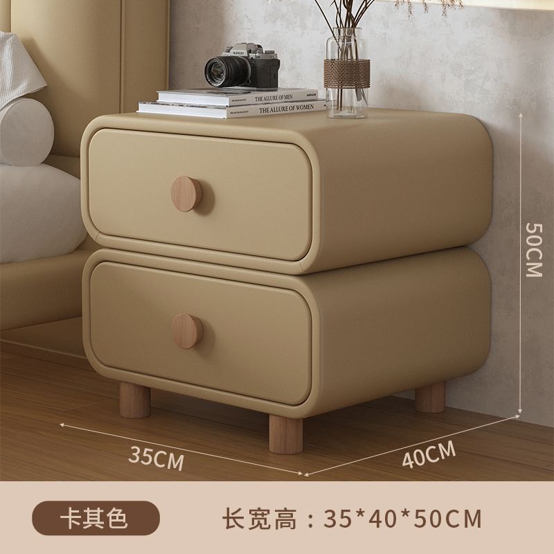 크림 스타일 침대 옆 테이블 침실 단단한 나무 가죽 침대 옆 캐비닛 간단한 현대 매우 간단한 설치-무료 작은 저장 캐비닛
