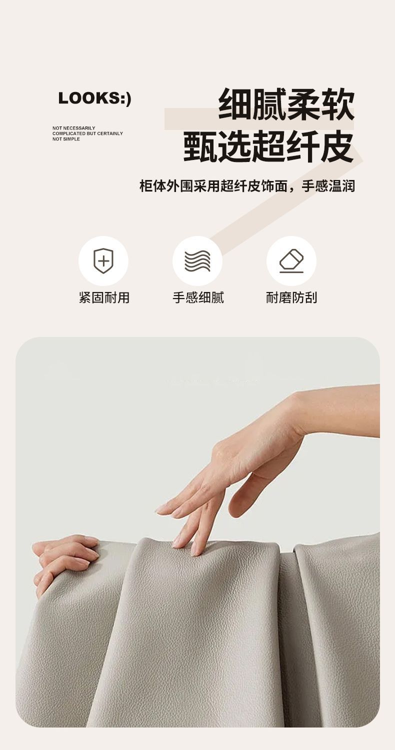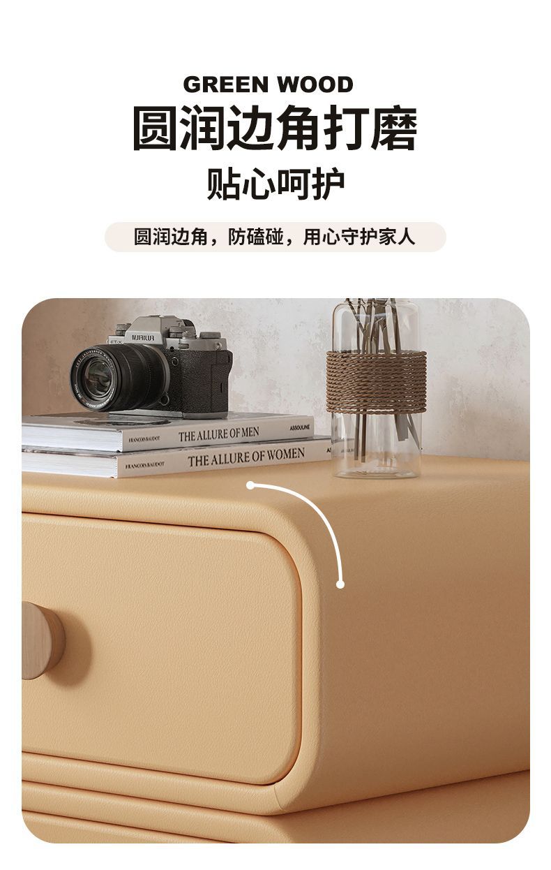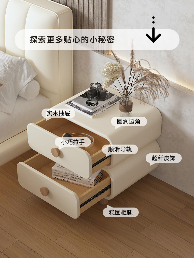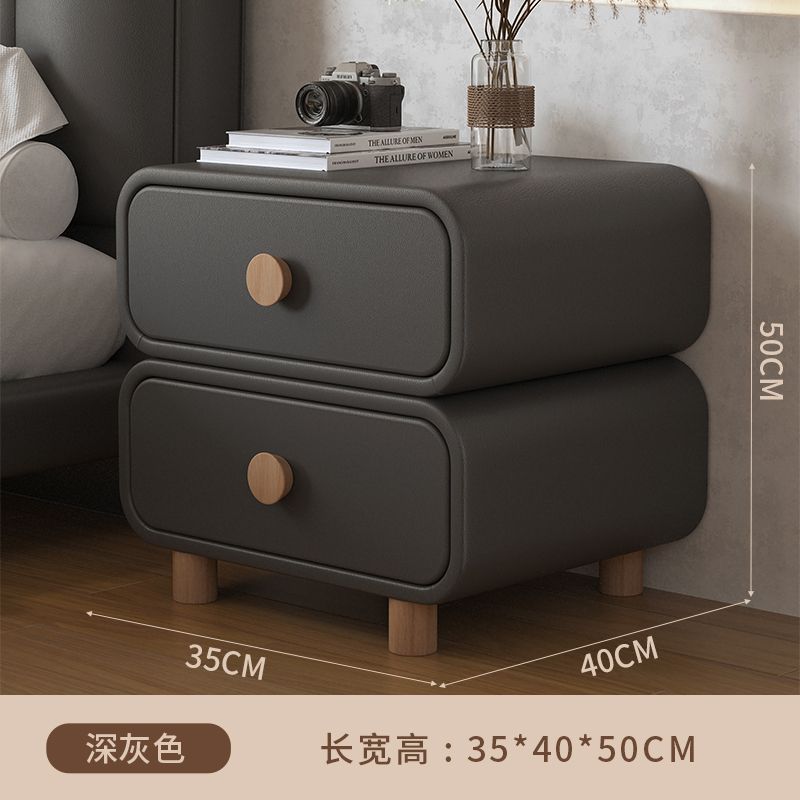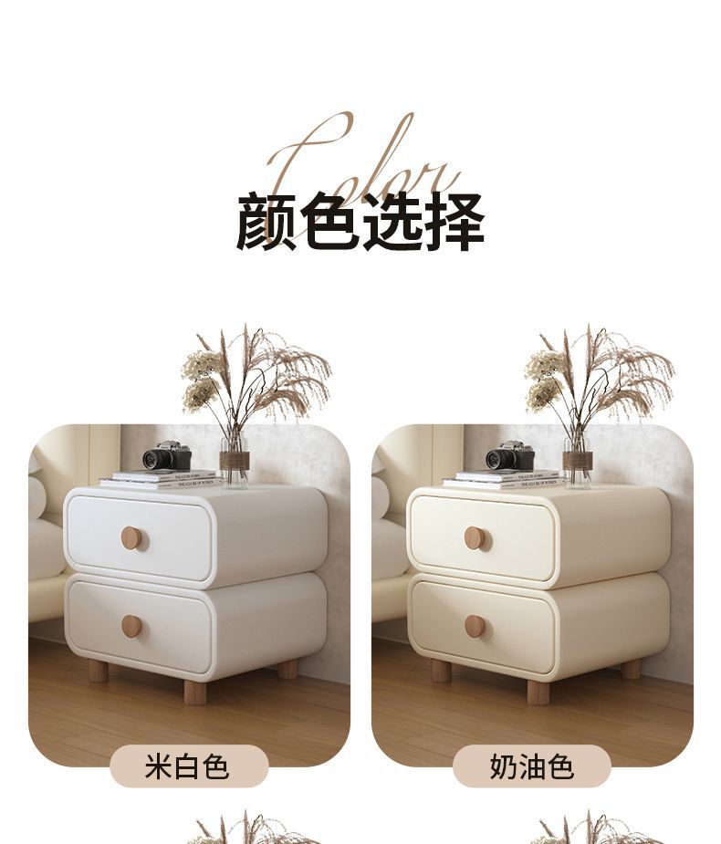 크림 스타일 침대 옆 테이블 침실 단단한 나무 가죽 침대 옆 캐비닛 간단한 현대 매우 간단한 설치-무료 작은 저장 캐비닛
