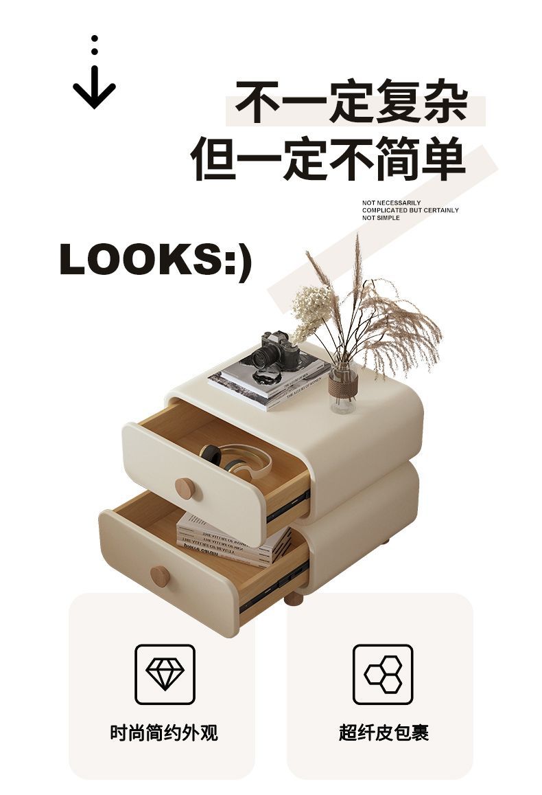 크림 스타일 침대 옆 테이블 침실 단단한 나무 가죽 침대 옆 캐비닛 간단한 현대 매우 간단한 설치-무료 작은 저장 캐비닛스토어 가기