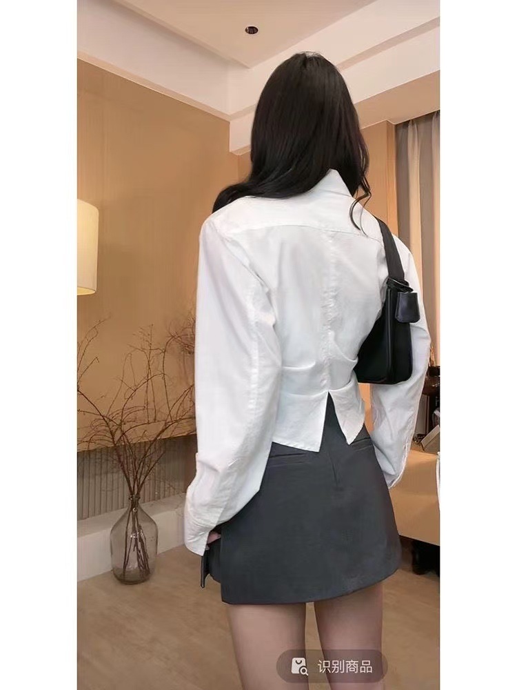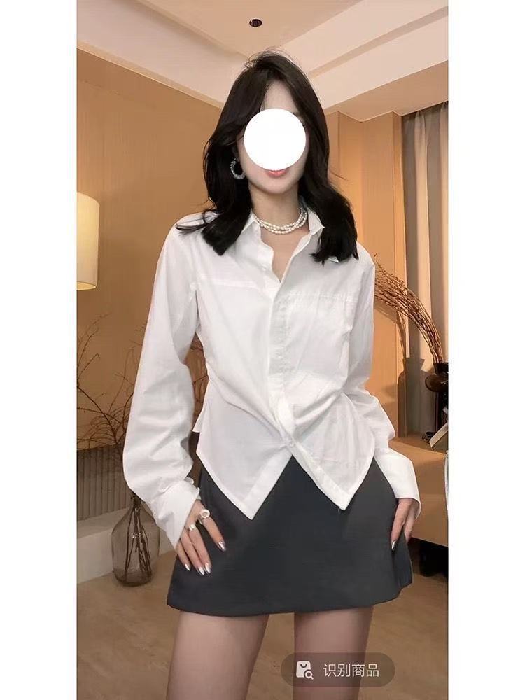IU 살짝 뚱뚱한 MM 클라인 블루 셔츠 여성 슬림핏 레이어드 디자인 틈새 허리 탑 긴팔 셔츠스토어 가기