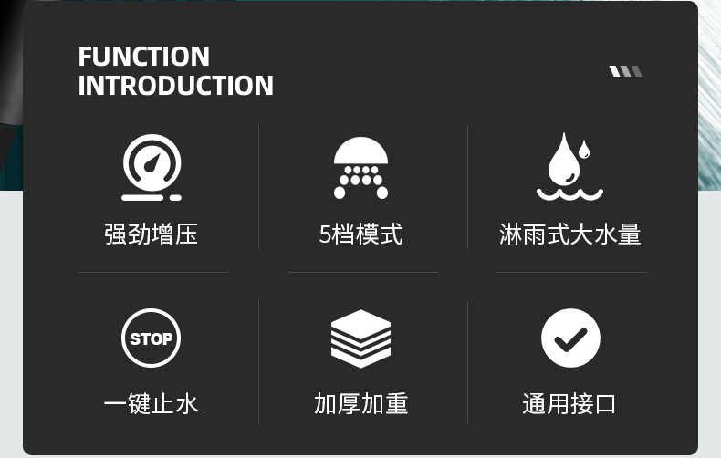 • 5단 슈퍼차저 샤워 헤드●큰 물 출력◆업그레이드된 대형 패널(블랙)★