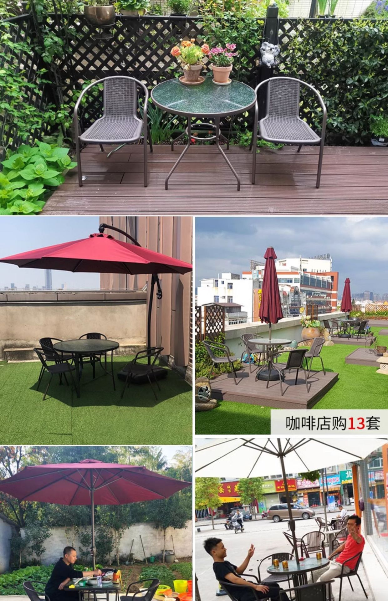J ^ 안뜰 정원 야외 테이블 및 의자 안뜰 우산 커피 테이블 조합 야외 레저 야외 발코니 등나무 의자 방수