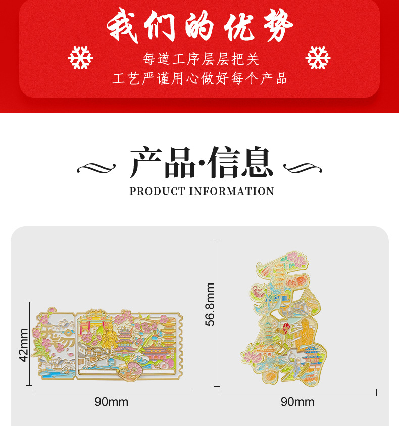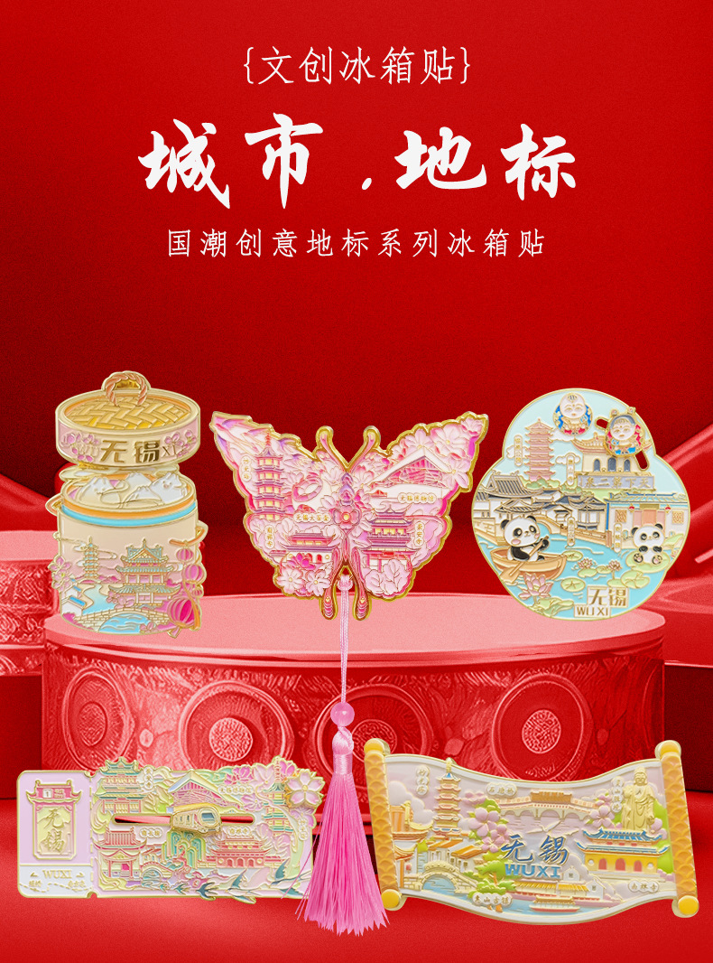 Wuxi 문자 그림 금속 냉장고 자석 여행 문화 및 창의적 기념품 Yuan Touwu Ling Shan Buddha City 냉장고 자석 재고 있음스토어 가기
