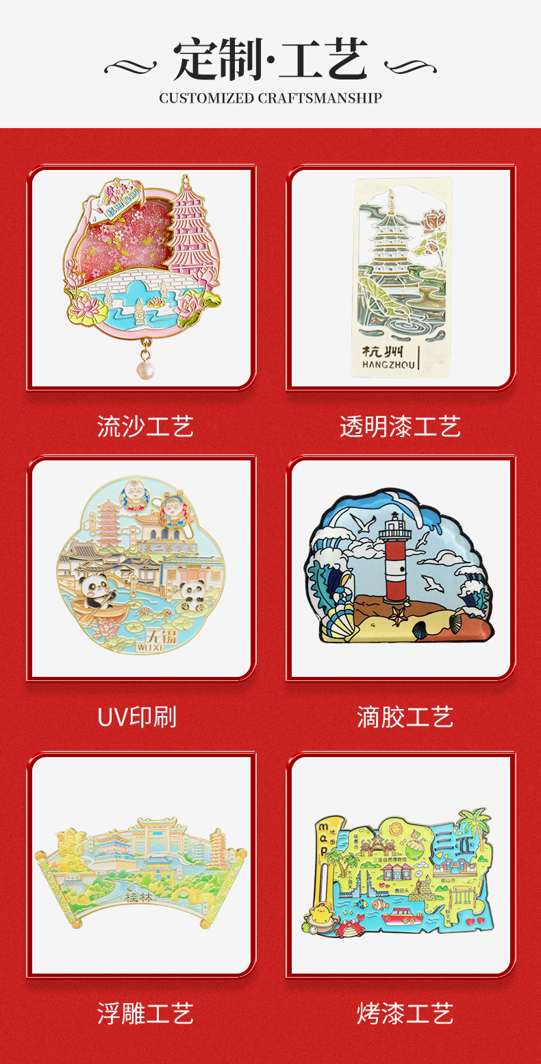 Wuxi 문자 그림 금속 냉장고 자석 여행 문화 및 창의적 기념품 Yuan Touwu Ling Shan Buddha City 냉장고 자석 재고 있음