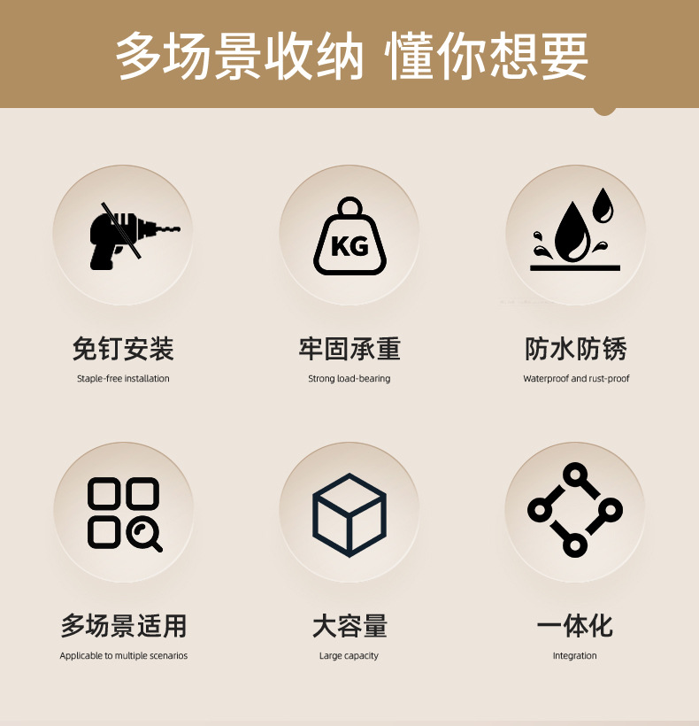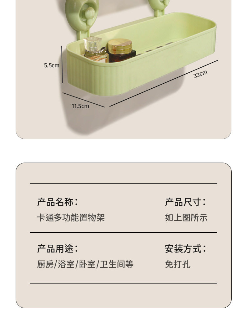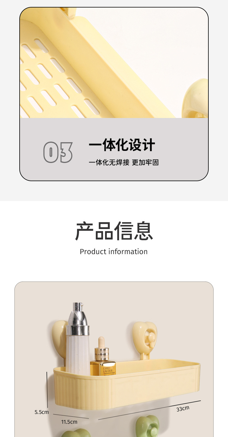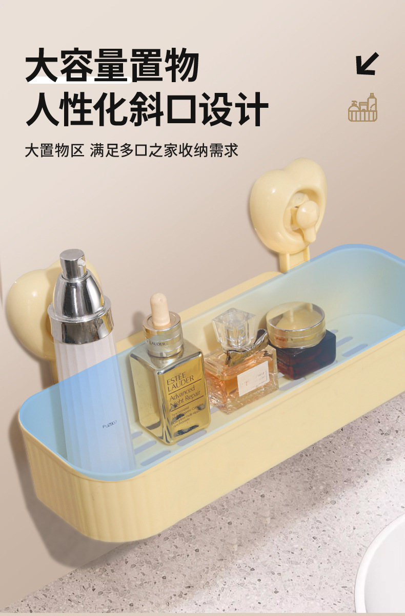 와우 맞춤형 욕실 펀치 프리 선반, 세면대 보관함, 욕실 걸이 바구니, 흡입 컵, 벽걸이형 보관함