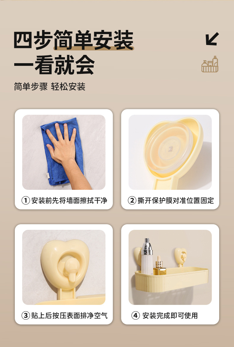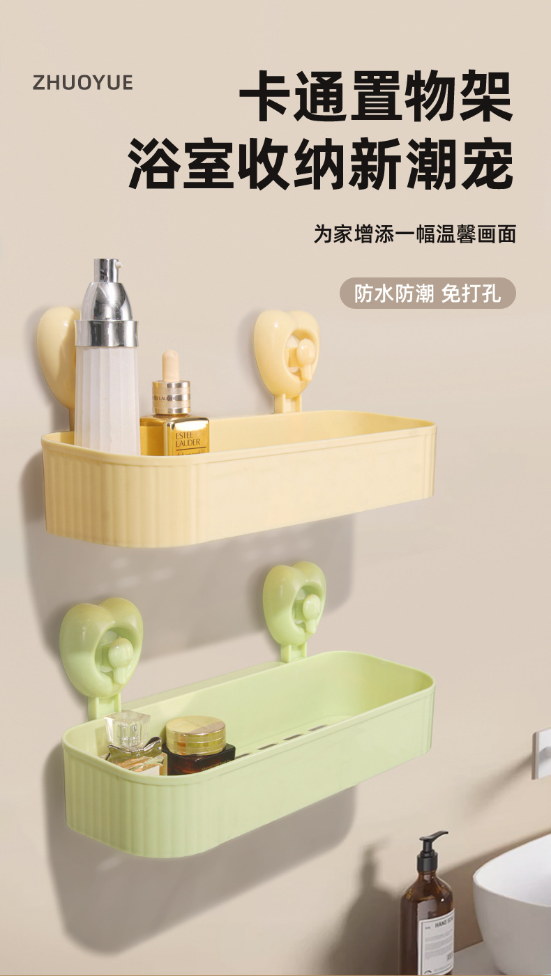 와우 맞춤형 욕실 펀치 프리 선반, 세면대 보관함, 욕실 걸이 바구니, 흡입 컵, 벽걸이형 보관함스토어 가기